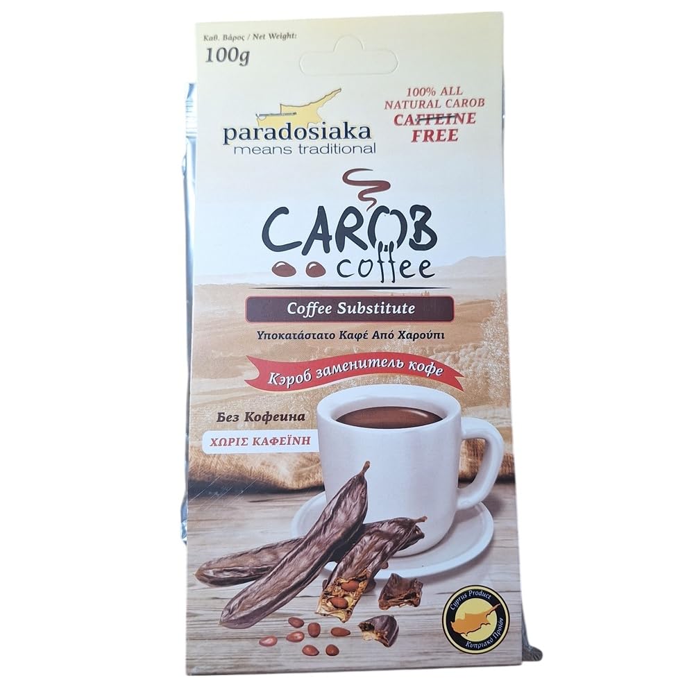 Paradosiaka Carob Coffee – Caffeine-Free Ground Coffee Substitute (100g) Naturally Sweetened Traditional Greek Beverage 1 Pack Enjoy a hot and satisfying cup of coffee, without the caffeine. Paradosiaka Carob Coffee is a traditional Greek coffee substitute made from 100 roasted carob, offering a rich, earthy flavor with natural sweetness and zero bitterness. Key features: Caffeine-free and natural. Perfect for those avoiding caffeine or looking for a healthier alternative to coffee. Rich and aromatic flavor, smooth and slightly sweet, with a lightly roasted taste – no sugar or additives needed. Gentle on the stomach, non-acidic and easy to digest, ideal for sensitive stomachs or for sipping late at night. Traditional Greek product inspired by Mediterranean wellness and crafted with care. Easy to brew: Use in a French press, saucepan, or coffee maker, just like regular ground coffee. What you get: 1 pack of Paradosiaka Carob Coffee. Net weight: 100g. Whether you're cutting back on caffeine or exploring new flavors, Paradosiaka Carob Coffee is a delicious and healthy choice. Sip your way to comfort, naturally! Let me know if you'd like an SEO-friendly version or a shorter version for product offers. INGREDIENTS Carob Citrus