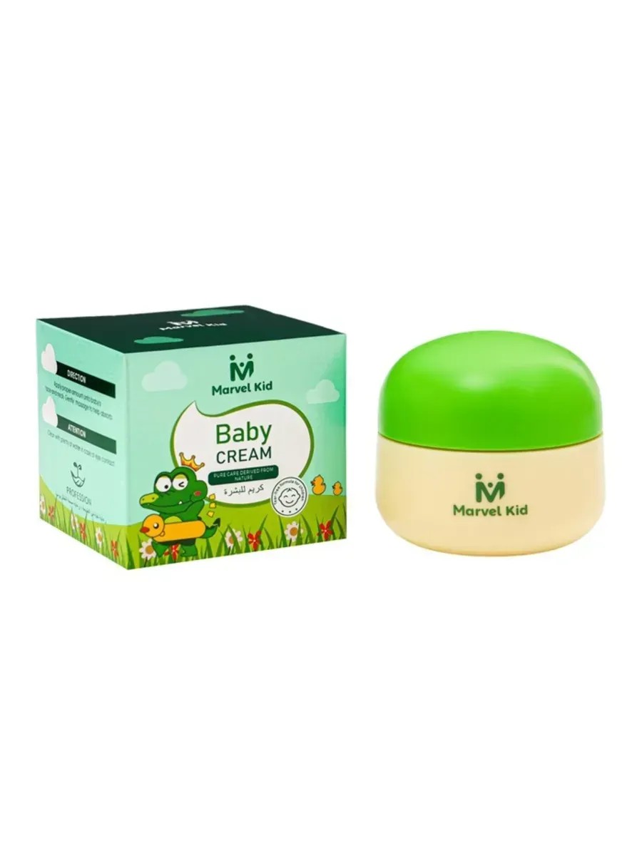 Marvel Kid Baby Cream, 50g, is the optimal solution for caring for your baby's sensitive skin. Designed with the specific needs of children in mind, this cream has a light texture that absorbs quickly and leaves no sticky film on the surface. It deeply moisturizes and protects the skin from dryness, helping to maintain its natural balance. Enriched with nourishing ingredients, the cream helps prevent redness and irritation, making it ideal for everyday use. Each time you apply it, the skin becomes soft and velvety, bringing comfort and pleasure to your baby's skincare routine. Marvel Kid is all-in-one care for the health and beauty of your baby's skin.