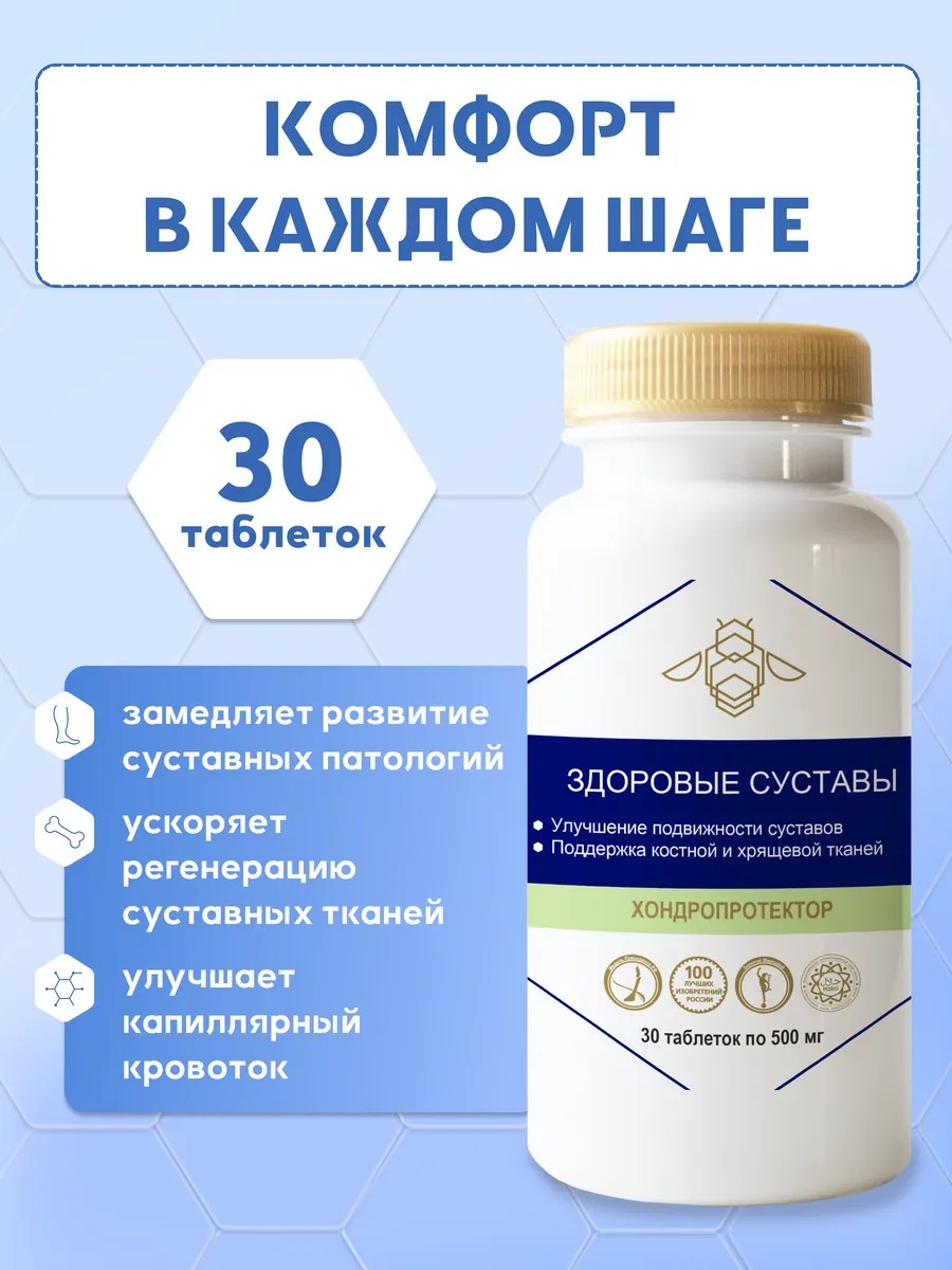 Азбука пчелы Здоровые суставы — это уникальный комплекс, который поможет вам повысить подвижность и выносливость суставов, улучшить их кровоснабжение и купировать болевые ощущения, воспаления, иные симптоматики суставных заболеваний.
