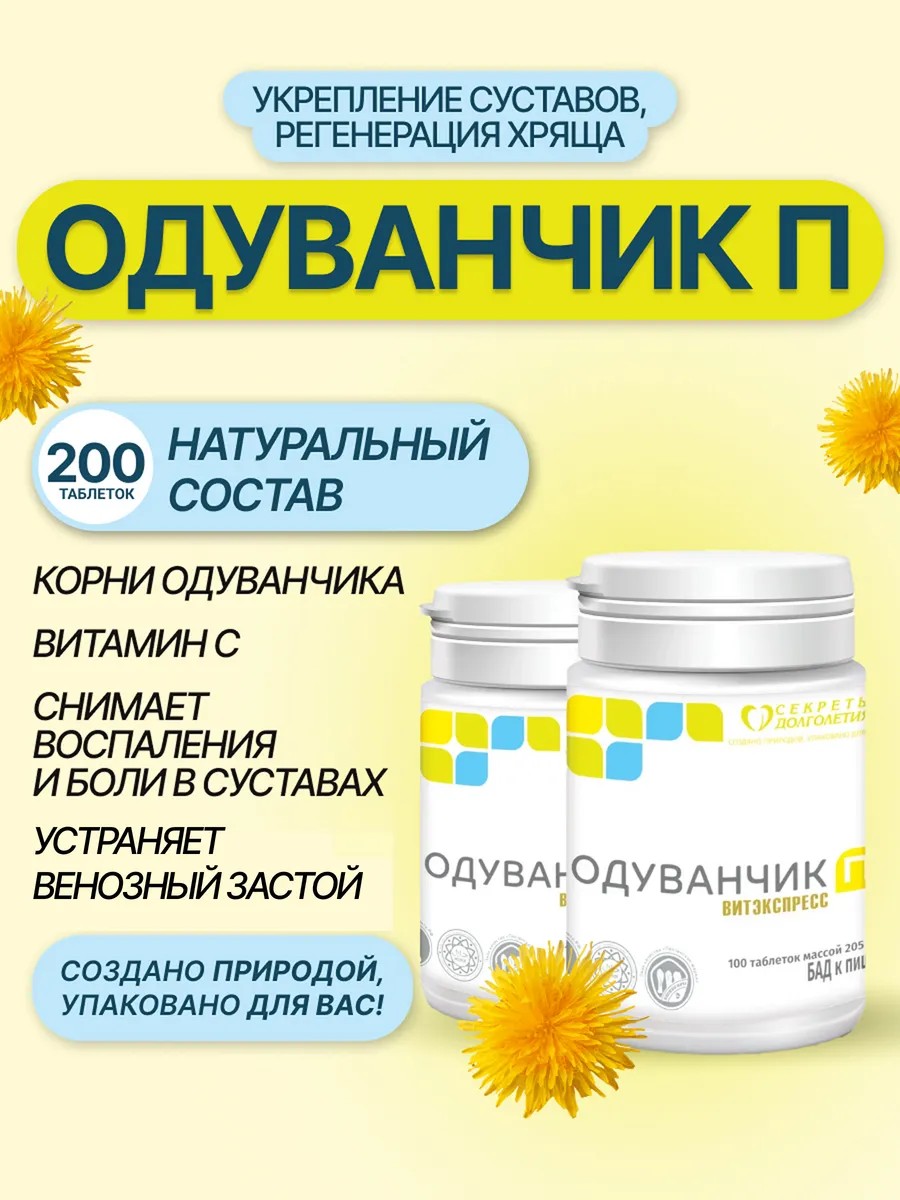 Одуванчик в таблетках также может использоваться для профилактики и в комплексной терапии проблем с суставами, а также при ОРВИ как отхаркивающее средство.