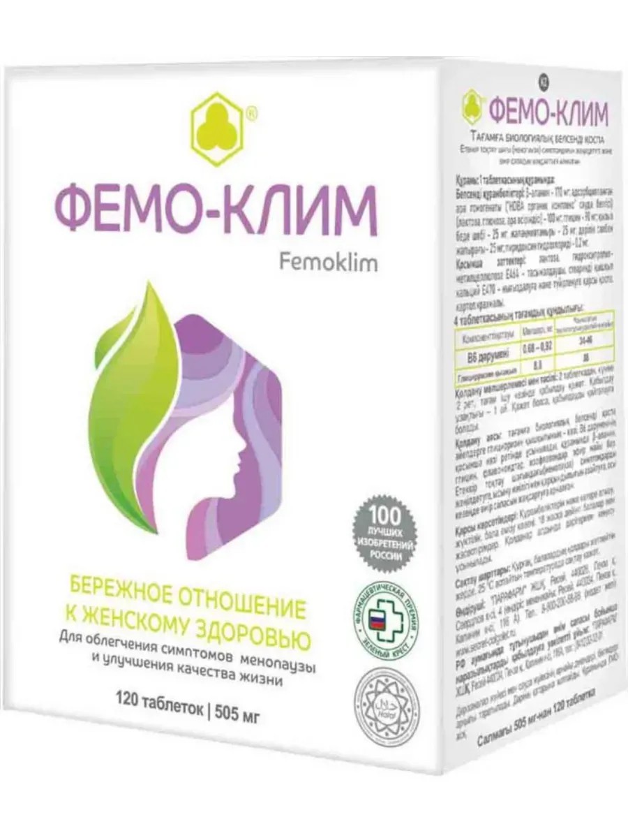 A natural, non-hormonal remedy for relieving menopausal symptoms. Femo-Klim from Parapharm has been included by Rospatent in the register of the 100 best inventions in Russia. Femo-Klim, a menopause medication, is the best non-hormonal solution to hormonal problems! Menopause is a completely natural condition for the female body, associated with changes in hormonal levels and the gradual fading of reproductive function. Unfortunately, few people manage to cope with it easily. Russian scientists have succeeded in reliably and, most importantly, safely relieving women from hot flashes, depression, dizziness, and other painful symptoms of perimenopause. By combining scientific advances and the power of natural substances, they have created a biocomplex for relieving menopausal symptoms that has no analogues in the world. Recommended: for relieving menopausal symptoms; reducing the frequency and severity of hot flashes; improving quality of life during menopause and menopause. It has been proven that during menopause, decreased androgen levels impact hot flashes, emotional state, and other menopausal symptoms just as much as decreased estrogen levels. Restoring the balance between estrogens and androgens results in a calming of emotions, a reduction in anxiety, increased energy, and a reduction in hot flashes and sweating. Menopause vitamins stimulate the activity of the sex glands, the production of the body's own hormones, and maintain a hormonal balance between estrogens and androgens. What makes HDBA-organic drone homogenate, obtained from drone bee larvae, a unique supplement. Drone homogenate contains the prohormones progesterone, estradiol, and testosterone. These components influence the body's own hormone production. Synthetic female hormones have undesirable side effects, which Femo-Klim does not. The supplement is gentle on the body and is fully absorbed. According to statistics, 60-70% of women experience hot flashes and sweating for 7.5 years. This dietary supplement helps with hot flashes during menopause, alleviating these symptoms and improving quality of life. It has been clinically proven that taking Femo-Klima for 3 months reduces hot flashes and night sweats by 71.8%, and anxiety and depressive disorders by 50.8%. Drone homogenate is obtained through adsorption, preserving prohormones. It also contains phytoestrogens from red clover, licorice, and sage, which replace low levels of the body's own estrogens, amino acids, and vitamin B6. Femo-Klima's phytoestrogens are obtained through cryoprocessing of whole medicinal plants (red clover, licorice, and sage). Cryoprocessing at -175°C preserves the natural potency of the herbs. It is recommended for young women with menstrual irregularities. Main benefits: Reduces the frequency and intensity of hot flashes; Replenishes estrogen and testosterone deficiencies; Reduces fatigue; Stabilizes the psycho-emotional state; Maintains immunity; Contains entomological progesterone to reduce the risk of breast cancer. Recommended for: Maintaining the immune system; Relieving menopause symptoms; Improving quality of life during menopause. This dietary supplement combats weight gain during menopause and helps improve women's health. The combination of medicinal plant extracts and vitamins ensures maximum product effectiveness. Directions for use: Take 2 tablets twice daily with meals. The recommended course is 1 month. Repeat the course if necessary. Choose Femo-Klim to maintain your health and well-being during menopause. Contraindications: Individual intolerance to any of the components; Pregnancy; Breastfeeding; Age under 18. The amount of lactose included in the tablets as an excipient does not have a negative effect on people with diabetes or lactose intolerance. Add this product to your cart and take a step toward improving your well-being today!