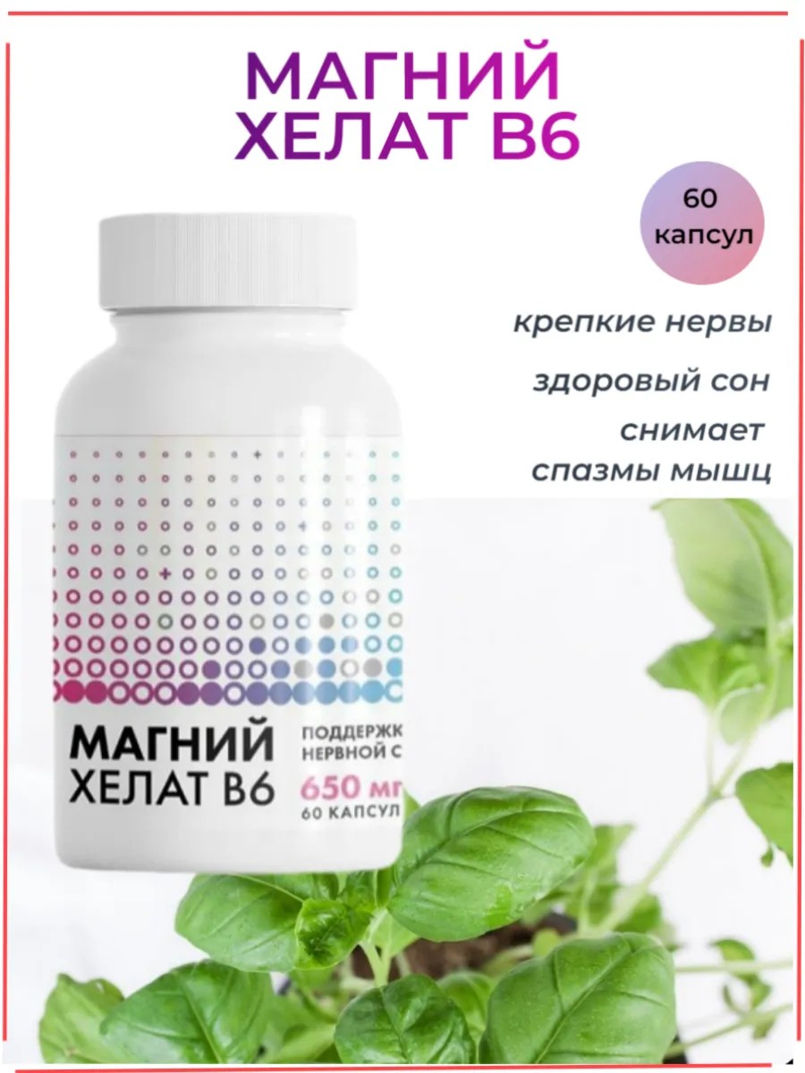 | Trade name | Dietary supplement "Magnesium Chelate B6" (650 mg capsules) |