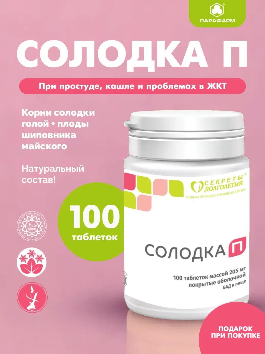 Солодка П- натуральная биодобавка, которая является надежным помощником в борьбе с кашлем и недостаточностью дыхания. Этот продукт способствует отхождению мокроты при заболеваниях дыхательной системы. В состав входят корни сладкого корня и плоды шиповника, что обеспечивает эффективное воздействие на организм.