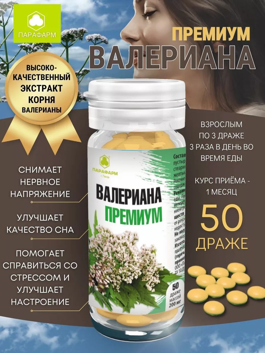 Валериана Премиум от Парафарм - это успокаивающий препарат растительного происхождения, снимающий напряжение. Успокоительное на основе валерианы рекомендуется при расстройствах центральной нервной системы (повышенной эмоциональной возбудимости, тревожности, истерии); при бессоннице и плохом неглубоком сне. Валериана показана для нормализации работы сердца, для снижения артериального давления, для снятия спазмов и судорог, для устранения приступов эпилепсии. Также валериана используется при нарушениях коронарного кровообращения, при желудочно кишечных расстройствах, при нарушениях работы печени и желчного пузыря, при заболеваниях щитовидной железы, при менструальных болях, при мигренях, спровоцированных нервными расстройствами. Валериана также благотворно влияет на процесс очищения организма от паразитов.