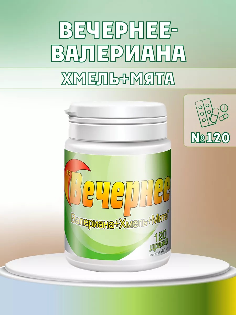 | Торговое наименование | биологически активная добавка к пище "Вечернее Валериана+Хмель+Мята" (драже массой 200 мг) |