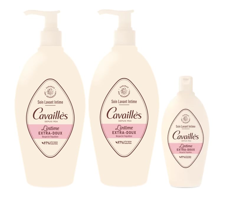 CONTENU 2x Soin toilette Intime extra doux 500ml 1x Soin toilette Intime extra doux 100ml. ROGÉ CAVAILLES Chez Cavaillès nous sommes convaincus que la vie est une histoire de régénération. Depuis près de 100 ans, nos produits évoluent pour accompagner les petits et les grands et prendre soin des peaux même les plus sensibles. CONSEILS D'UTILISATION Ce Soin Lavant Intime s'utilise comme un savon liquide pour les muqueuses même sensibles. Une à deux fois par jour et au quotidien, usage externe uniquement. Pensez à rincer soigneusement !. ORIGINE NATURELLE PACK RECYCLABLE Composé à plus de 97 d'ingrédients d'origine naturelle, le Gel toilette Intime apporte son geste à la planète avec sa bouteille 100 plastique recyclé et recyclable. SOIN LAVANT INTIME EXTRA DOUX Une zone INTIME respectée et protégée : enrichie en prébiotiques, notre formule sans savon composée à 97 d'ingrédients d'origine naturelle nettoie en douceur et aide à protéger l'équilibre intime. Un moment de BIEN-ÊTRE grâce au surgras végétal pro-régénérant et aux extraits de calendula apaisant pour un confort optimal.