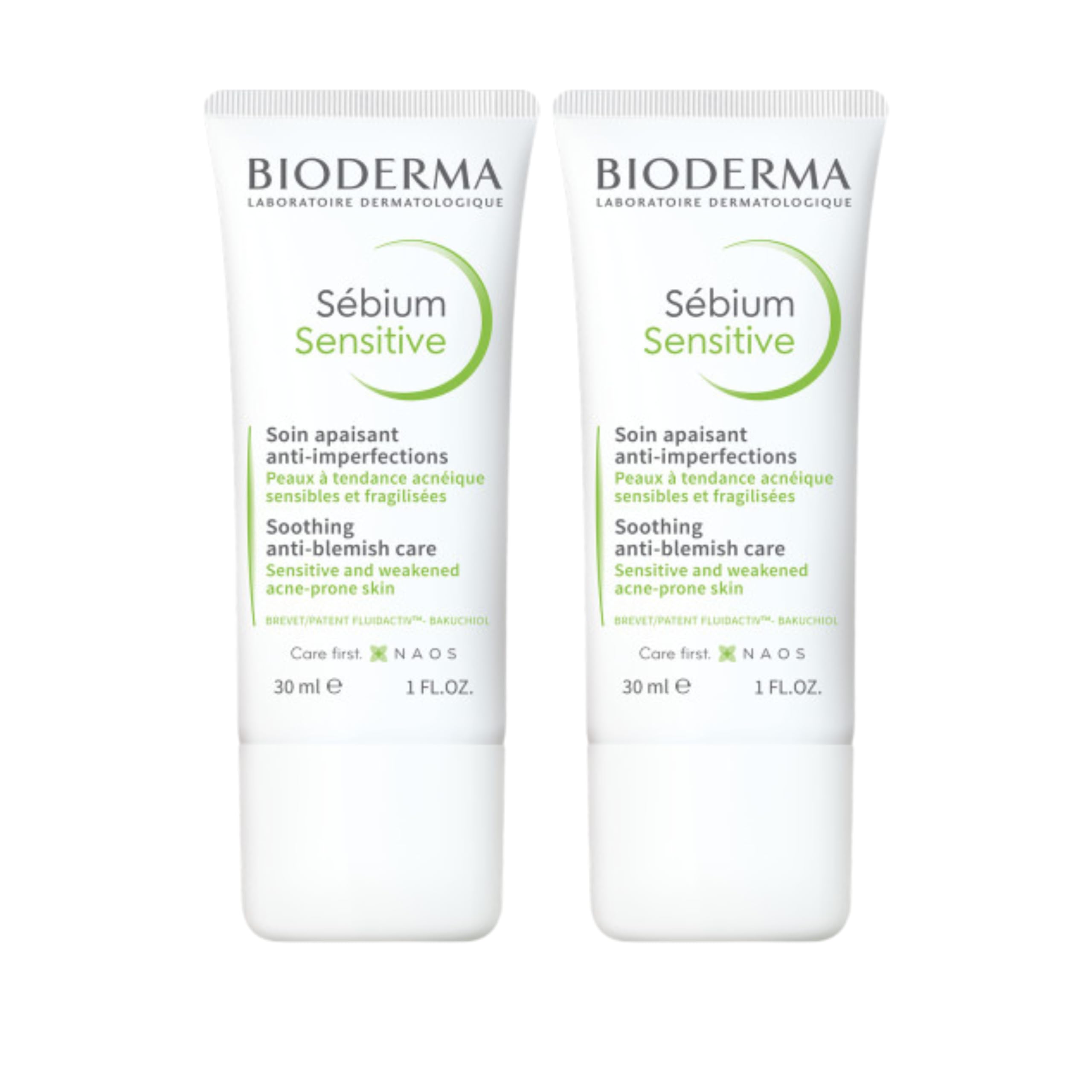 CONTENTS Pack of 2 x 30ml Sébium Sensitive. THE LABORATORY All products from the Laboratory are formulated according to the principles of ecobiology, which are at the heart of our approach, to respect your skin's ecosystem and preserve its health over the long term. DIRECTIONS FOR USE Apply to skin that has been previously cleansed with Sébium Foaming Gel or Sébium H2O. Gently massage until the product is absorbed. BENEFITS The Inflastop complex eliminates inflamed pimples and redness that could eventually lead to marks. The high concentration of glycerin guarantees immediate and lasting hydration. SÉBIUM SENSITIVE Sébium Sensitive is specifically formulated to hydrate and soothe sensitive and weakened acne-prone skin. It rehydrates and eliminates pimples.