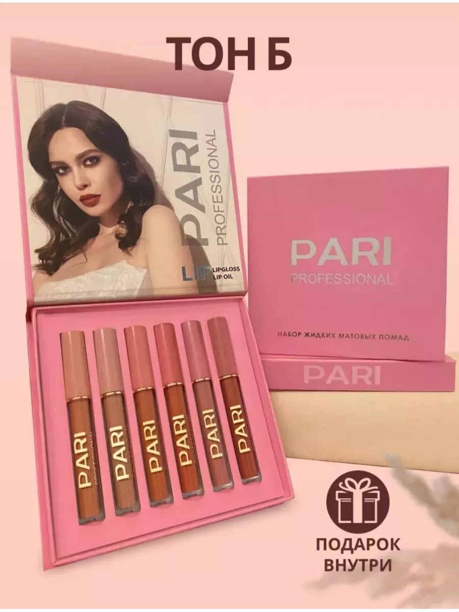 set of long-lasting matte lipsticks and lip glosses - 6 ultra-matte, fashionable velvet shades for stylish looks. SHADE A is a vibrant palette with dark enough shades for evening makeup. SHADE B is a calming palette with nude shades for daytime makeup. This set of PARI liquid matte lipsticks features an innovative formula that glides on like a gloss but dries to an ultra-matte, opaque texture.