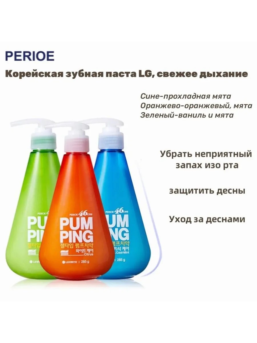 Корейская зубная паста с дозатором Perioe (Перио) Pumping Breath Care – безопасная освежающая паста в форме геля с фтором (1400 ppm) и насыщенным вкусом мяты и трав, которая эффективно и бережно очищает поверхность зубов, защищает от кариеса и заботится о длительной свежести Вашего дыхания.