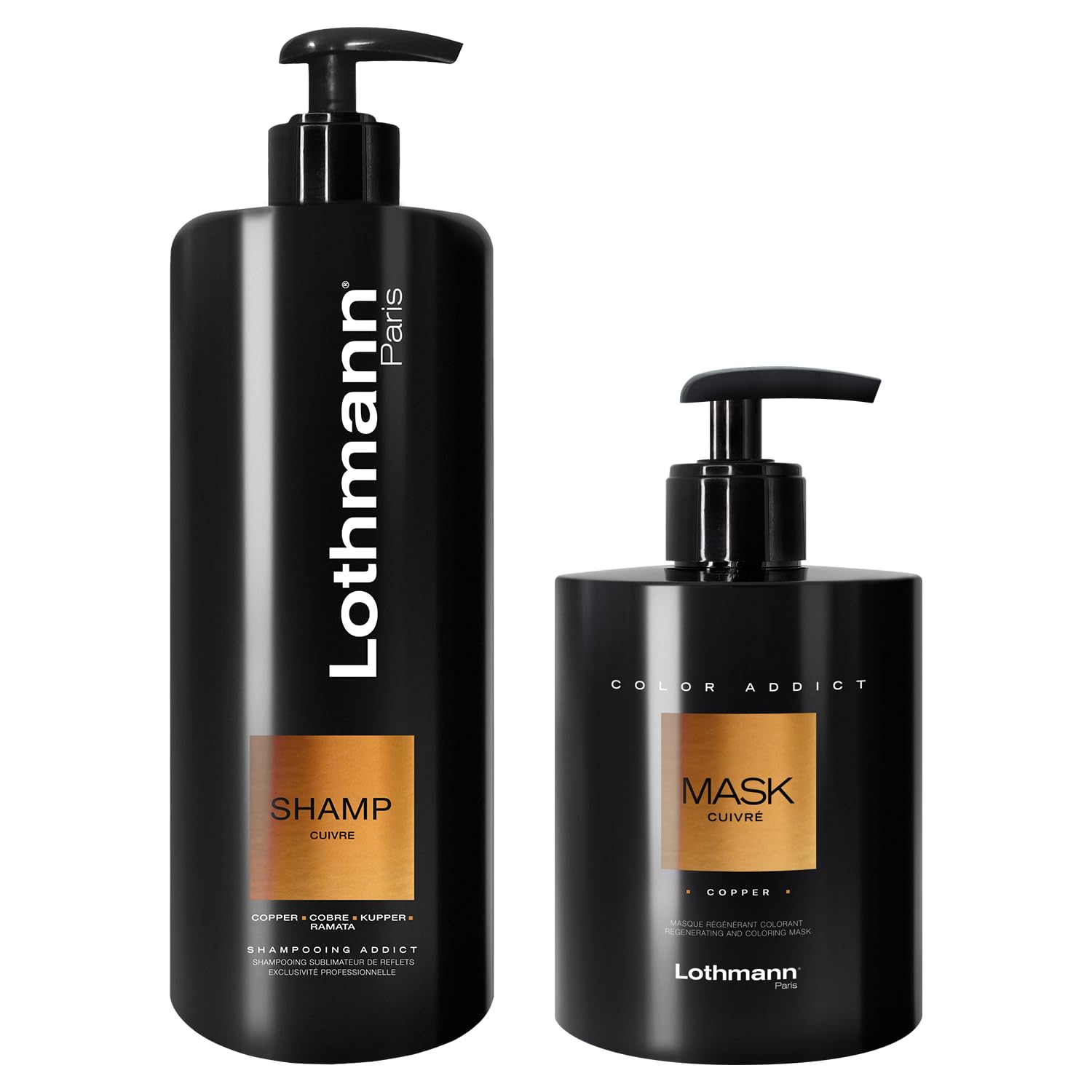 : Enhance your chestnut hair with this shampoo and mask range from Lothmann Paris. These high-quality products, made in France, revive and intensify the copper highlights in your hair. The shampoo gently cleanses while preserving the radiance of your color. The nourishing mask provides incomparable shine and silky softness. Let your copper hair shine with this hair care routine that enhances copper tones. A professional care experience for exceptional results at home. Directions: Use the shampoo regularly and the mask once a week for optimal results. P.when('A').execute(function(A) { A.on('a:expander:toggle_description:toggle:collapse', function(data) { window.scroll(0, data.expander. expander[0].offsetTop-100) }) }) Safety Warning: For External Use Only. See moreBeauty Routine: Use the shampoo regularly and the mask once a week for optimal results. Made in France: These products are manufactured in France according to strict quality standards. Repairing Treatment: Enriched with nourishing active ingredients, they strengthen and protect the hair fiber. Sublime Results: They intensify and enhance the coppery tones of your hair for a radiant color. Professional Formula: This shampoo and mask are designed by experts to revive the highlights of brown hair.Description du produit Sublimez vos cheveux châtains avec cette gamme de shampooing et masque de la marque Lothmann Paris. Ces produits de haute qualité, fabriqués en France, ravivent et intensifient les reflets cuivrés de vos cheveux. Le shampooing nettoie en douceur tout en préservant l'éclat de votre couleur. Le masque nourrissant apporte une brillance incomparable et une douceur soyeuse. Laissez vos cheveux cuivrés resplendir avec cette routine capillaire qui sublime les nuances cuivrés. Une expérience de soin professionnel pour des résultats exceptionnels à la maison. Mode d'emploi Utiliser le shampooing régulièrement et le masque une fois par semaine pour des résultats optimaux. P.when('A').execute(function(A) { A.on('a:expander:toggle_description:toggle:collapse', function(data) { window.scroll(0, data.expander. expander[0].offsetTop-100) }) }) Avertissement De Sûreté Usage Externe Voir plusRoutine Beauté : Utilisez le shampooing régulièrement et le masque une fois par semaine pour des résultats optimaux. Fabriqués en France : Ces produits sont fabriqués en France selon des normes de qualité strictes. Soin Réparateur : Enrichis en actifs nourrissants, ils renforcent et protègent la fibre capillaire. Résultats Sublimes : Ils intensifient et font briller les nuances cuivrés de vos cheveux pour une couleur éclatante. Formule Professionnelle : Ce shampooing et ce masque sont conçus par des experts pour raviver les reflets des cheveux châtains.Paris - Routine Duo Shampooing Sublimateur 500ml Nouveau Mask Colorant Cheveux Colorés Cuivrés 300ml