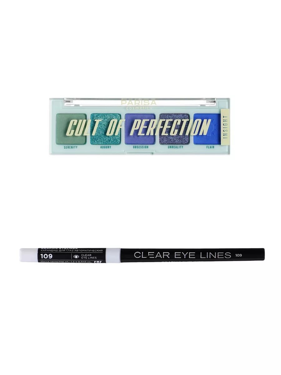 Тени для век Parisa Cosmetics Cult of Perfection Е-605 тон 6 Insight + Parisa Cosmetics Eyes Карандаш для глаз механический № 109 Белый