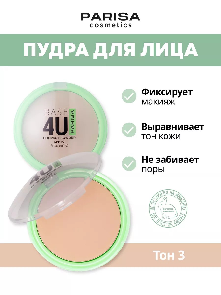 Thus, the compact face powder Base 4U is a universal product that combines the functions of a fixing agent, a base, and a contouring agent. It will become an indispensable part of your cosmetics, providing perfect makeup and facial care.