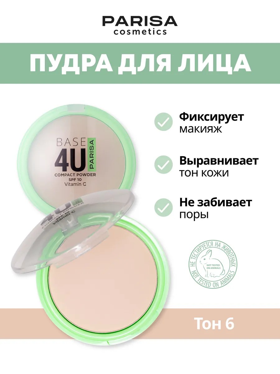 Thus, the compact face powder Base 4U is a universal product that combines the functions of a fixing agent, a base, and a contouring agent. It will become an indispensable part of your cosmetics, providing perfect makeup and facial care.
