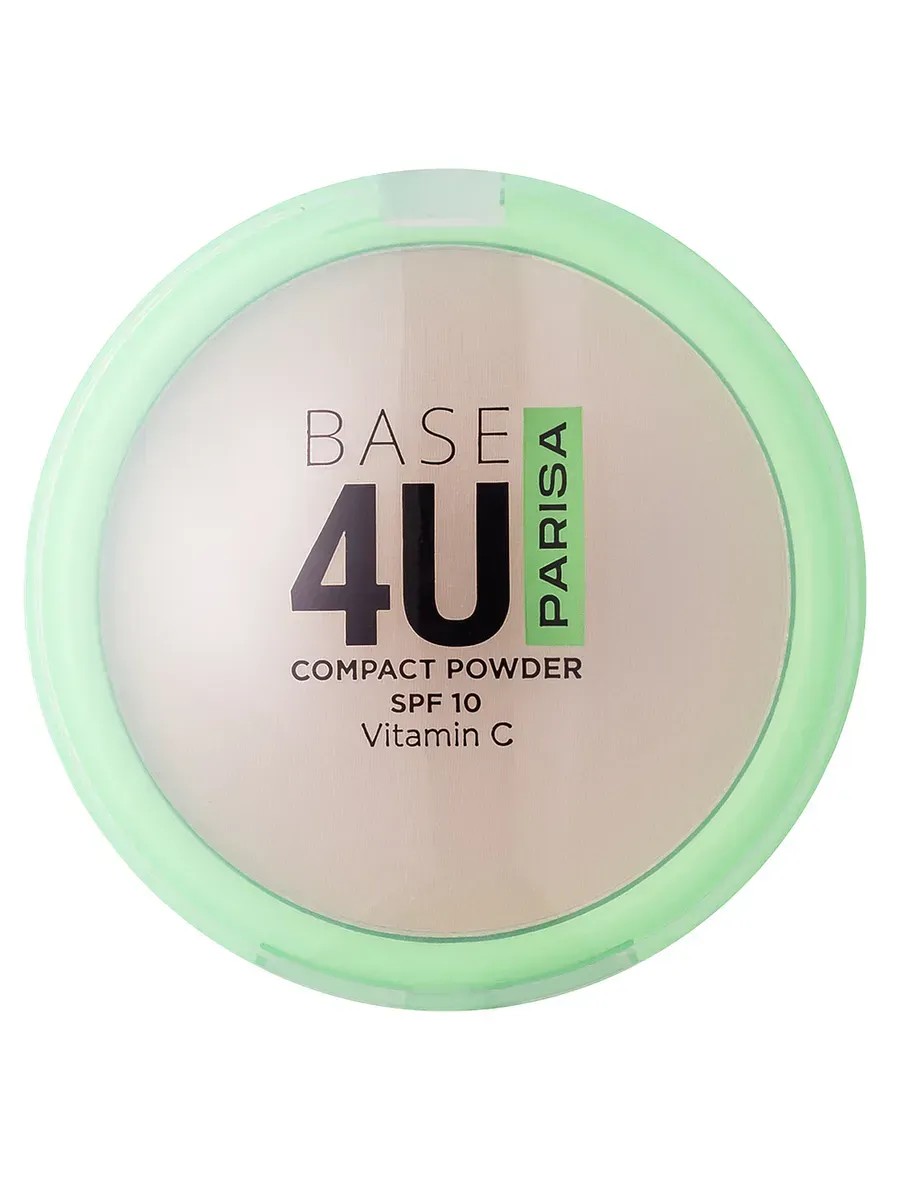 Base4U PP-02 Pressed Face Powder, Shade 02. This compact powder with SPF 10 gently protects your skin from the harmful effects of UV rays. Thanks to its specially selected ingredients, it's suitable for all skin types. It perfectly sets makeup, leaving skin smooth and velvety without creating a mask-like effect. It doesn't weigh down the skin, doesn't clog pores, and doesn't cause dryness or flaking. The product provides a light, weightless coverage, is ideal for setting makeup, prolonging its wear, and eliminating the oily shine that appears throughout the day. It also conditions the skin, protecting it from external negative influences, leaving it fresh and radiant.