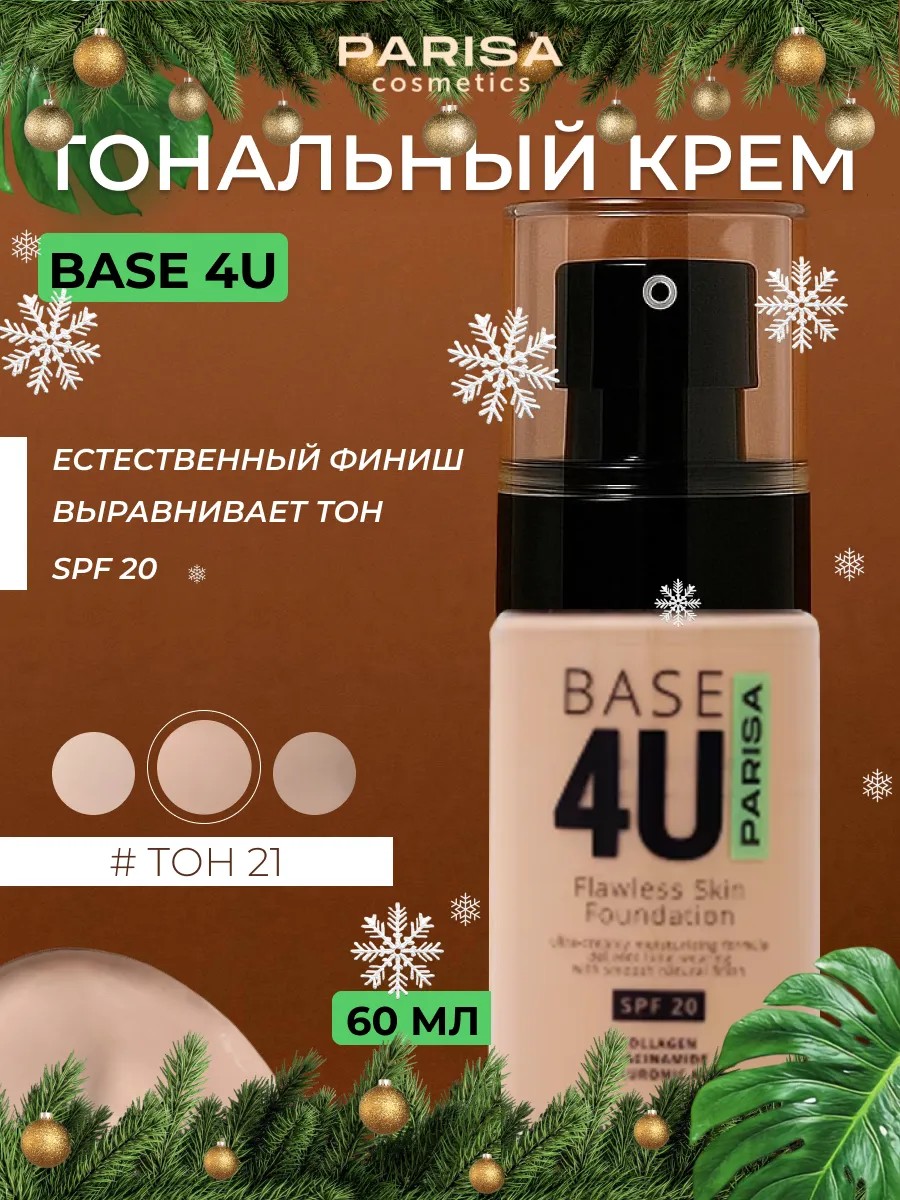 Декоративная косметика с SPF защитой — это не только красота, но и забота о здоровье кожи. Тональный крем Base 4U содержит spf, который защищает лицо от вредного воздействия ультрафиолетовых лучей, предотвращая преждевременное старение кожи. Этот тональник станет незаменимым помощником в создании безупречного макияжа, подчеркивая естественную красоту и индивидуальность каждой женщины.