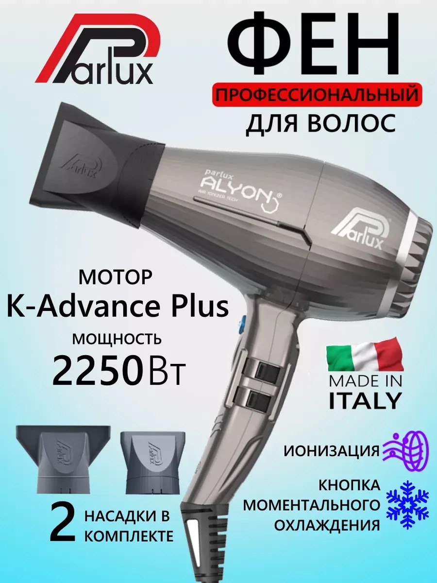 Фен PARLUX Alyon Ionic, графит, 2250Вт, ионизация, 2 насадки