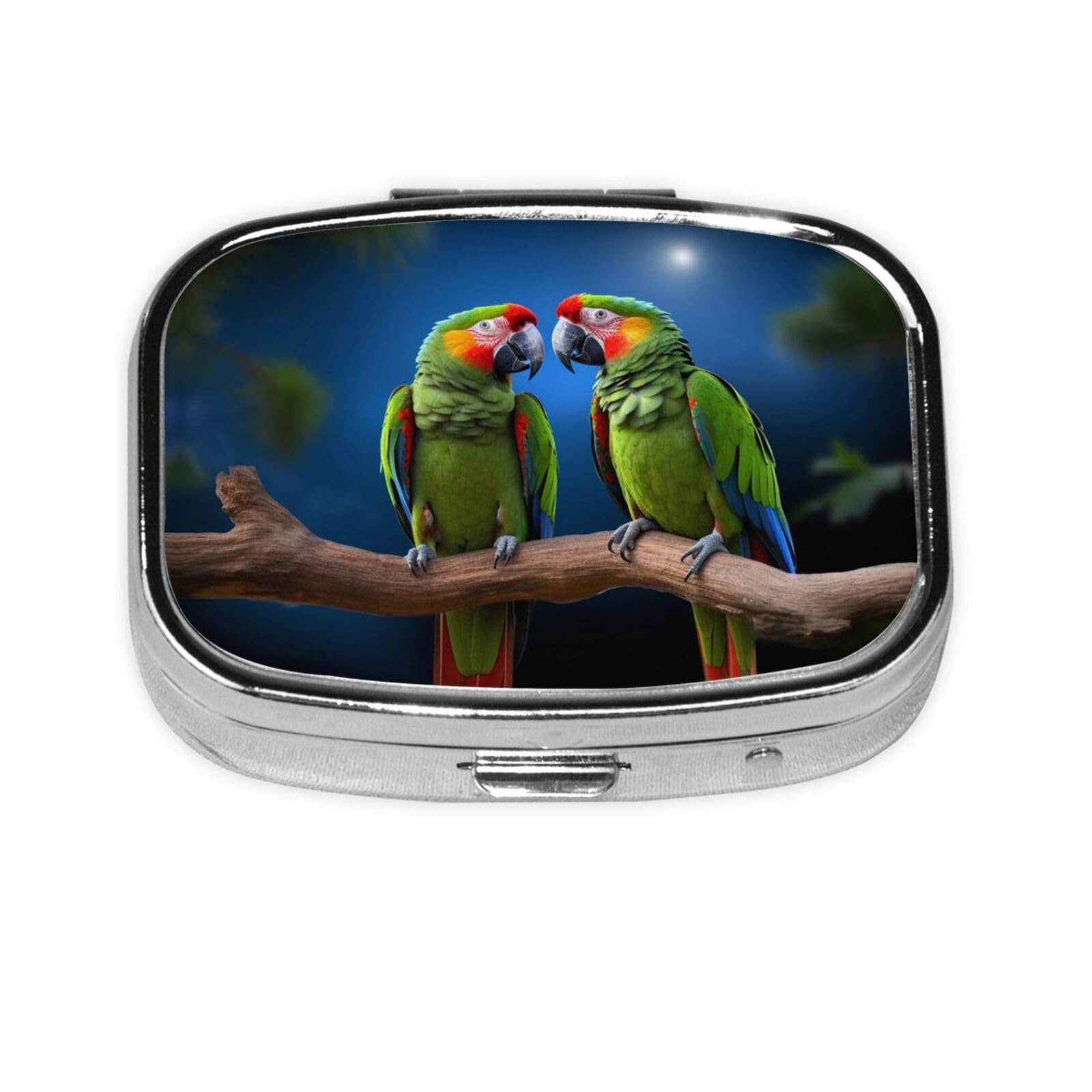 This Parrots Square Metal Pill Box With Good Sealing Will Not Cause Yellowing Due To Oxidation,Features Unique Art Pattern Design That As A Perfect Artwork Balance Aesthetics And Utility That,This Pill Organizer Can Bring You A Better Mood When Using.100% Satisfaction Guarantee:We Are Committed To Provide The Best Quality And Best Services To You.Your Demand And Recognized Is Our Continuous Development Increased Power! If There Is Any Problem With Your Purchase,Please Feel Free To Contact Us,We Will Try Our Best To Help You. Wide Applications:Perfect Pill Box Can Be Applied To Store Pills,Vitamins,Medicines,First Aid,Spice,Candies,Cosmetics,Gels,Creams,Jewelry,Ear Buds,Ear Plugs,Etc.Or Other Small Items,Ideal For Travel,Work,Camping And Other Outdoor Activities. Push Button Switch:Rectangular Pill Box Mechanical Switch,It Stays Closed Well,Push Button Opening With Minimal Force And Snaps Down Relatively Easy After It'S Filled.The Pill Sorter Will Never Pop Open By Themselves.Good Sealing Function Protects Your Medicine From Damp, Dust And Dirt. Pill Case Dimensions:Portable Pill Box Is Small In Size And Light In Weight,Measuring 2.2 X 1.6x 0.7 Inches In Diameter And 1.58 Oz In Weight.Without Taking Up Space, Very Convenient To Carry On A Trip,You Can Easily Put It In Your Purse,Handbag, Pocket, Briefcase,Which Is Essential For Travelers And Workers Who Need To Take Daily Pills. Premium Materials: Parrots Moisture Proof Pill Case Made Of Quality Metal Construction With Plastic Inside Divider.Pill Organizer More Durable And Sturdy Than Plastic Pill Boxes,Food Grade Plastic Used For Inner Compartments,There Are Two Separate Compartments,Internal Divider Keeps Your Pills Or Vitamin Organized.