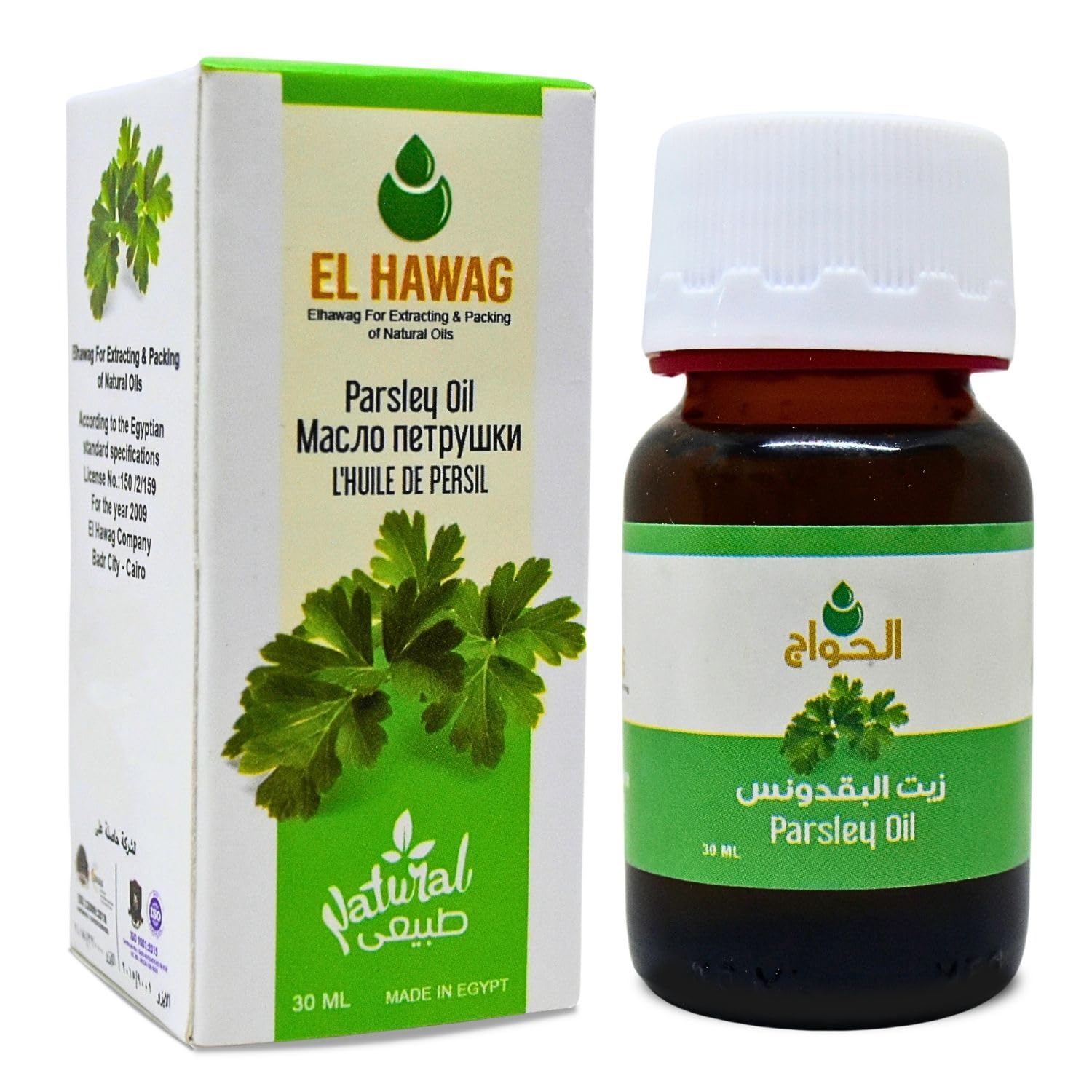 - Manufacture Expiration Dates Indicated On The Main Package Are In European Format Which Is DD MM YY . Oil Herbal Raw , Made From Parsley By The First Cold Pressed Method . Packed In Egypt , No Preservatives , Halal . Parsley Oil Raw Are 100 Pure Oil , Oil Providing You With The Finest Of Nature's Great . ( Cold Pressed ). Benefits Of Parsley Oil For Food Cooking To Use : One Spoon Three Times A Day On Salad Or Any Food You Prefer . Parsley Oil Is Unscented , Undiluted And Contains No Added Ingredients , Oil Is Extremely Gentle . Where He Is That It Blends Seamlessly With Essential Oils And Other Mix Ins . Benefits Of Parsley Oil For Body : Helps Good For The Body And The Skin And To Use Oil : Apply Twice Daily , In A Circular Motion , And Leave To Absorb Into The Skin For 5 To 10 Minutes . Elhawag Parsley Oil Pure Natural Cold Pressed Al Hawaj El Hawag Concentrated Crude Perfect Fresh For Food Cooking Body Herbal Herbals Herb Herbs Kosher Halal ( 1 Pack 1.01 oz 30 ml ) ? .