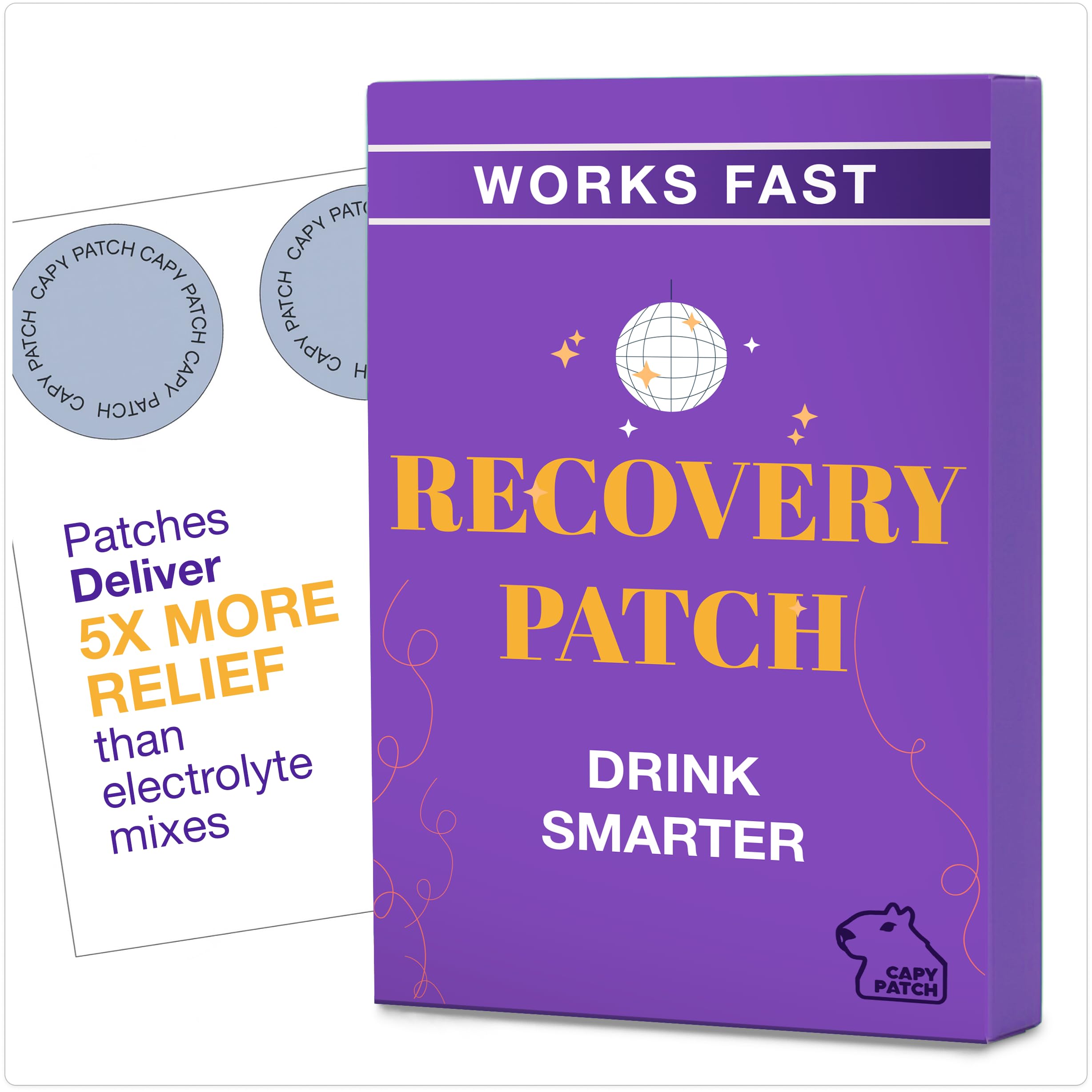 Capy Patch brings feel-good wellness to unforgettable nights—and the mornings after. Each Recovery Patch blends B12, Vitamin C and Green Tea in a simple peel-and-stick format so you can enjoy the moment and start the next day feeling ready. Apply before you go out the discreet, waterproof design stays comfortable through late dinners, dancing and travel. With 30 patches per box, you've got an easy routine for party nights and refreshed mornings—no sugar, no pills, just convenient support that fits your rhythm.