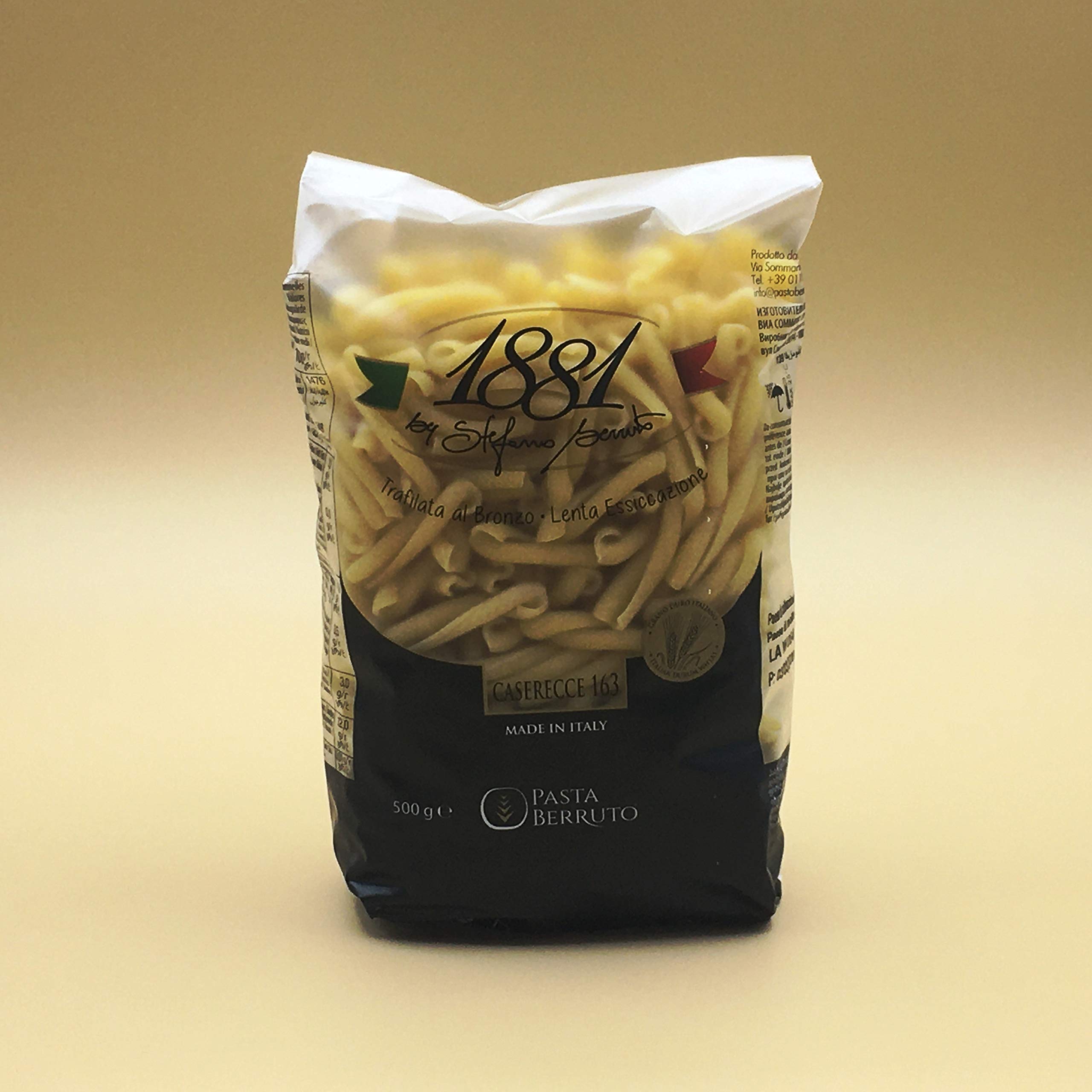 Bronze-extruded durum wheat semolina pasta. Durum wheat of Italian origin. Bronze-extruded for a perfect combination with sauce. Slow-dried. INGREDIENTS Durum wheat semolina, water. May contain traces of egg and soy. SAFETY WARNING Store in a cool, dry place. See more