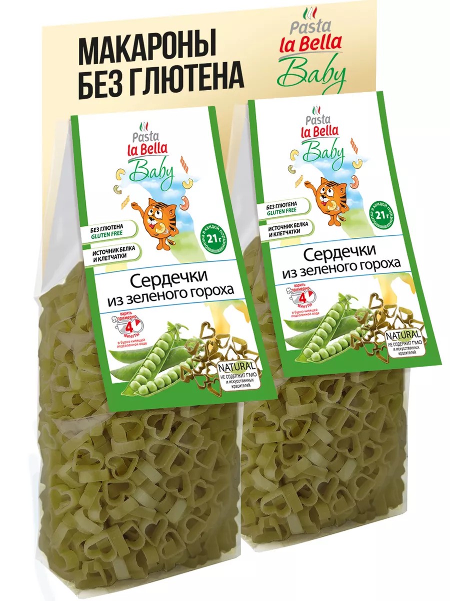 Pasta la Bella BABY Сердечки из зеленого гороха без Глютена для детей 2 упаковки