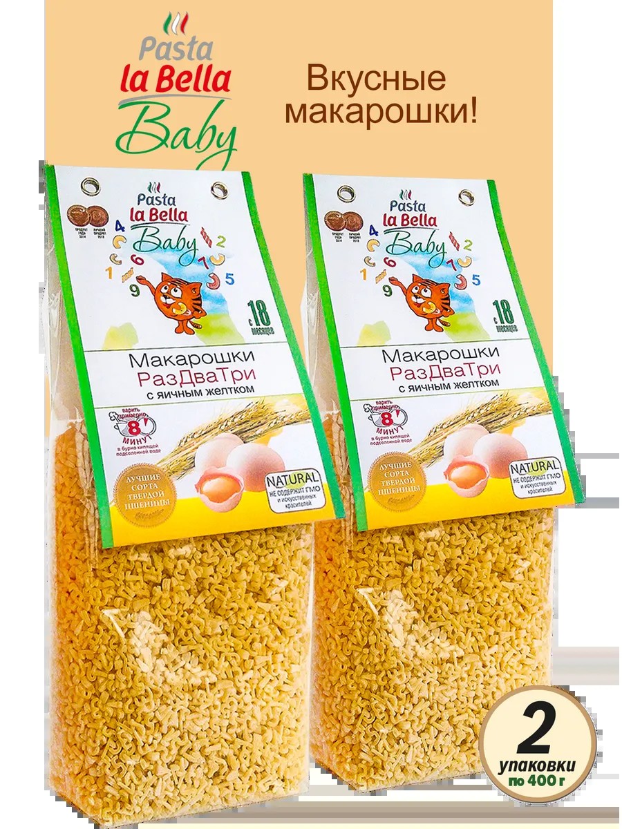В комплект входят 2 упаковки по 400 гр. детских Макарон Pasta la Bella Baby РазДваТри.