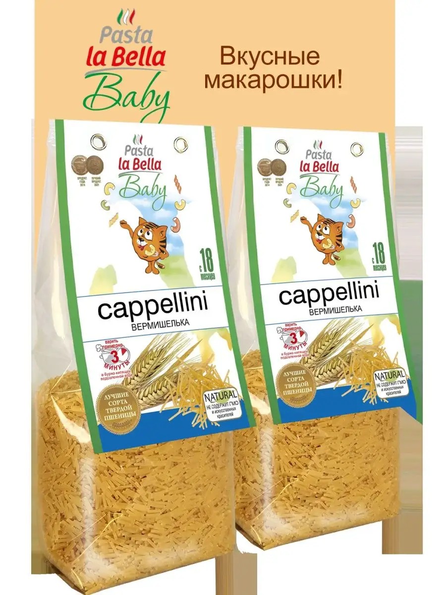 Макароны для детей Pasta la Bella Baby Вермишелька - отличный выбор как для суповой заправки, так и для самостоятельного блюда. Линейка детских макарон Pasta la Bella Baby разработана специально для детей и сочетает привлекательный внешний вид с вкусными и полезными свойствами. Маленькие аппетитные вермишелинки понравятся как малышам, так и их родителям. Макаронные изделия сделаны исключительно из твердой пшеницы с высоким содержанием растительного белка, клетчатки, микроэлементов и витаминов группы "В", что оптимально для ребенка. В комплект входят 2 упаковки по 250 грамм детских Макарон Pasta la Bella Baby Вермишелька. Макаронные изделия Pasta la Bella BABY сертифицированы для питания детей школьного и дошкольного возраста.