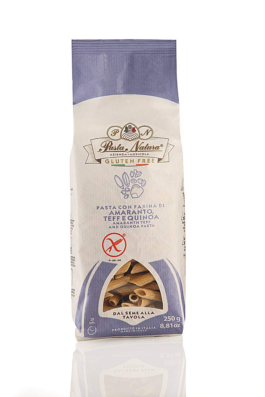 Pasta made with amaranth, teff, and quinoa flour. Gluten-free pasta specially formulated for people with gluten intolerance. Molded in high-quality bronze dies, giving the product a rough texture like hand-pulled pasta, and dried at a low temperature. Excellent resistance to cooking. INGREDIENTS Corn flour, rice flour, 10 amaranth flour, 5 quinoa flour, 5 teff flour. May contain traces of soy. COOKING INSTRUCTIONS Cook the pasta in boiling salted water until it reaches a simmer. SAFETY WARNING Store in a cool, dry place. See more
