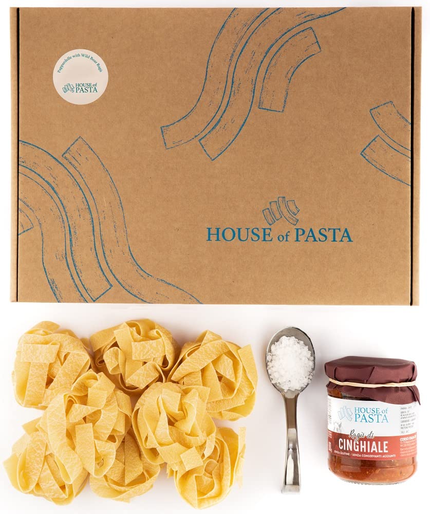 Pasta Recipe Kit - Pappardelle with Wild Boar Rag | Double Portion Gourmet Italian Artisan Dried Egg Pasta Served with Finest Italian Sauce | Restaurant-Quality Dish Ready in 6 Minutes A. Pappardelle with Wild Boar Rag