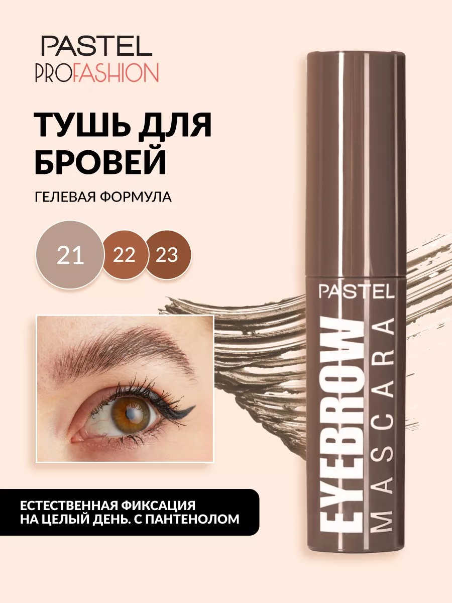 Тушь для бровей Pastel — это качественный продукт, который поможет создать идеальные брови. Стойкая тушь для бровей обладает кремовой текстурой, которая легко наносится и равномерно распределяется по бровям, придавая им густоту и объем. А благодаря гелевой основе, тушь надежно фиксирует волоски, обеспечивая свежий вид макияжа в течение всего дня. Гипоаллергенная тушь идеально подходит для натурального макияжа бровей, так как имеет светло-бежевый натуральный оттенок, который подходит для светлого цвета волос. Компактная упаковка из высококачественного пластика удобна в использовании и легко помещается в косметичку. Маленькая щеточка сужается к кончику, что позволяет точно и аккуратно наносить тушь на брови. Бежевая тушь для бровей прошла дерматологический контроль и имеет безопасный состав, который не вызывает аллергических реакций. Она также подходит для веганов, вегетарианцев и является халяль, так как не тестируется на животных и имеет проверенные компоненты в составе. Тушь с пушистой щеточкой имеет экономичный расход, что позволяет использовать ее долгое время. Тушь гель для бровей для бровей станет незаменимым помощником в создании как естественного, так и вечернего макияжа.Оттенок: 21 светло-бежевый.