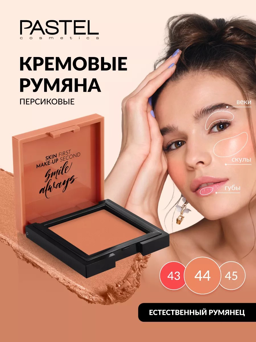 This creamy, peach-toned Cream Blush has a light, creamy texture that glides on perfectly. It instantly adds a healthy, natural, and fresh glow to your cheeks and accentuates your cheekbones. Special ingredients ensure long-lasting wear and regulate sebum secretion. Thanks to its highly pigmented formula and seamlessly blending texture, this liquid blush offers a wide range of effects, from translucent to ultra-bright. Each shade is accompanied by its own motivating slogan on the packaging. Our company is the official distributor of the Pastel Cosmetics brand in the Russian Federation and supplies only genuine products.