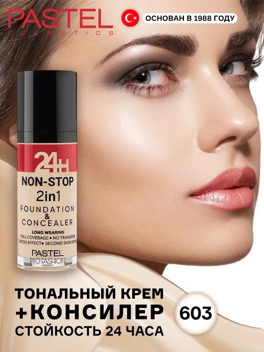 Для жирной и комбинированной кожи, с высокой степенью перекрытия несовершенств. Тональный крем с кремовой структурой «два в одном» NON STOP от турецкого бренда Pastel заменит 2 продукта для лица-тональная основа и корректор несовершенств, создает эффект второй кожи .Обеспечивают хорошее покрытие, не утяжеляя кожу, и в то же время сохраняют свою стойкость в течение 24 часов, не размазываясь, благодаря функции "No Transfer". Оказывает антиоксидантный и детокс-эффект, а также способствует обновлению кожи. Обладает эффектом маскировки пор и мелких морщин. Веганский состав не содержит веществ животного происхождения и глютена, продукция одобрена дерматологами.