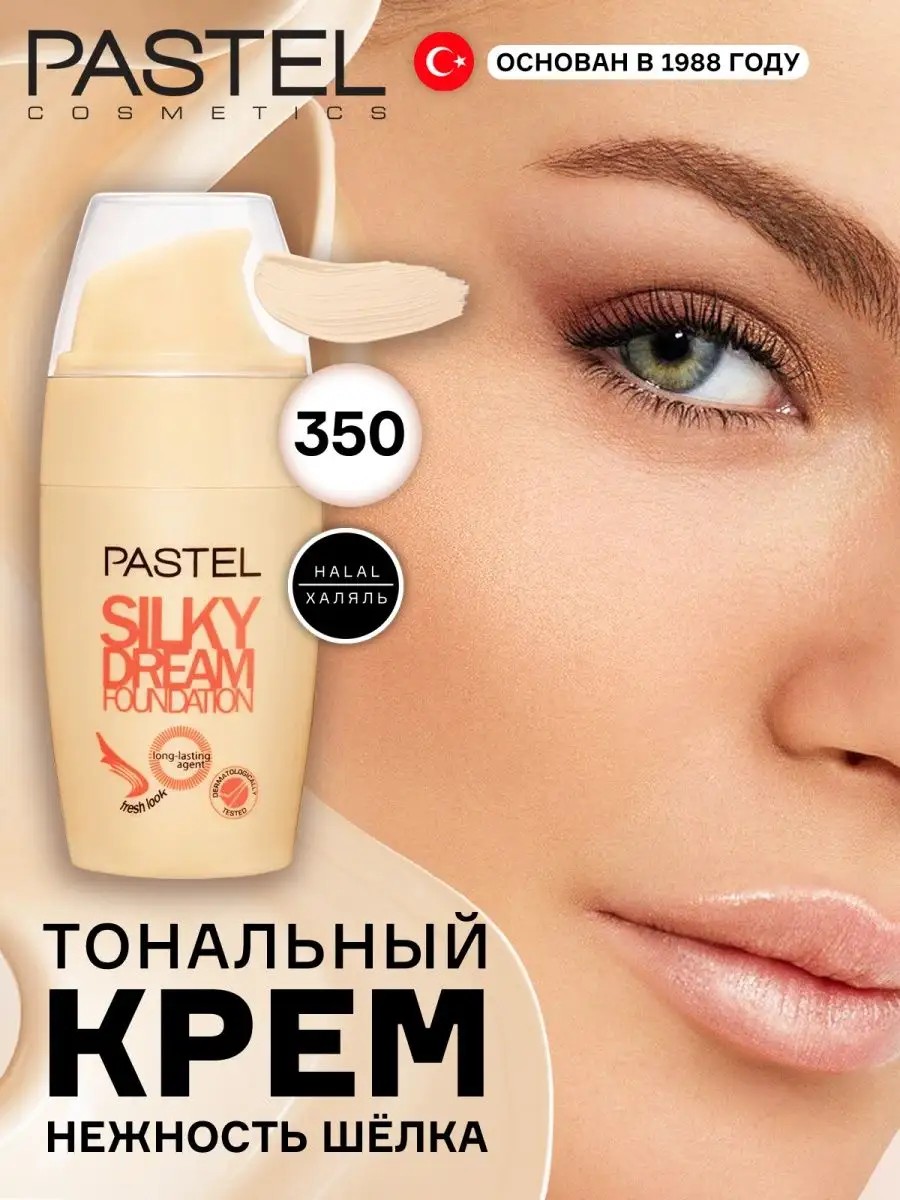Укрывающий эффект и легкая формула Тонального халяль крема Pastel Silky Dream,разглаживающая лифтинг основа, обеспечивает превосходный ровный цвет кожи на протяжении всего дня. Помимо этого, благодаря эффективной защите влаги, придает коже свежесть и здоровый вид. Консистенция нежная, распределяется равномерно, делая цвет лица ровным. Лицо после нанесения хорошо увлажнено, крем не забивает поры ,обеспечивает длительную гладкость в течение дня с маскирующей и легкой формулой. Данная профессиональная декоративная продукция для макияжа лица Pastel - это халяльная косметика, поэтому Вам не стоит переживать за качество и натуральность продукции. Веганский состав не содержит веществ животного происхождения и глютена.