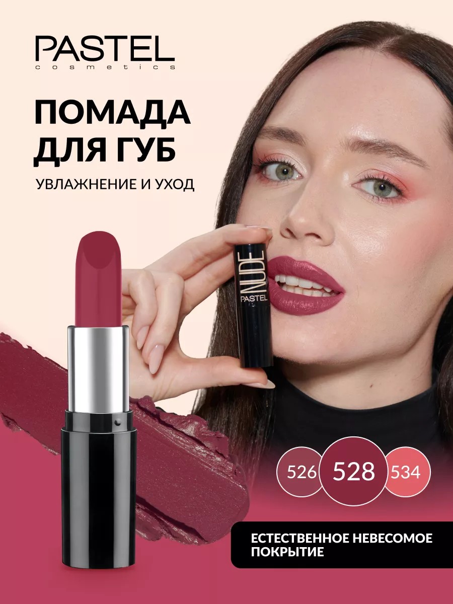 Pastel Cosmetics Moisturizing Lipsticks are professional decorative cosmetics that will help you create the perfect look. This matte lipstick has a light and weightless texture that doesn't weigh lips down or create discomfort. Its hydrating formula provides essential hydration and prevents dryness. The rich pinkish hue accentuates the natural beauty of lips and gives them a velvety matte finish. This shade is suitable for any skin tone and allows you to create a natural and delicate look. This moisturizing lipstick is non-drying and long-lasting, allowing it to stay put without creasing. This nude lipstick comes in a stick form with a retractable mechanism, making it comfortable and easy to use. The high-quality plastic packaging is compact and easy to carry, allowing you to always have it on hand. This long-lasting lipstick is cruelty-free and contains proven ingredients, making it suitable for vegans, vegetarians, and halal. This matte lipstick is dermatologist-tested and contains safe ingredients, making it hypoallergenic and suitable for sensitive skin. The stick lipstick applies easily, is non-sticky, and allows you to create any makeup look, providing coverage and eliminating dry lips. This creamy lipstick combines quality, comfort, and safety. It allows you to create both light daytime and sultry evening makeup looks.