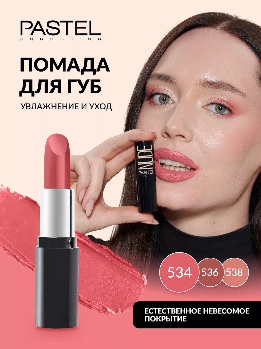 Pastel Cosmetics Moisturizing Lipsticks are professional decorative cosmetics that will help you create the perfect look. This matte lipstick has a light and weightless texture that doesn't weigh lips down or create discomfort. Its hydrating formula provides essential hydration and prevents dryness. The rich pinkish hue accentuates the natural beauty of lips and gives them a velvety matte finish. This shade is suitable for any skin tone and allows you to create a natural and delicate look. This moisturizing lipstick is non-drying and long-lasting, allowing it to stay put without creasing. This nude lipstick comes in a stick form with a retractable mechanism, making it comfortable and easy to use. The high-quality plastic packaging is compact and easy to carry, allowing you to always have it on hand. This long-lasting lipstick is cruelty-free and contains proven ingredients, making it suitable for vegans, vegetarians, and halal. This matte lipstick is dermatologist-tested and contains safe ingredients, making it hypoallergenic and suitable for sensitive skin. The stick lipstick applies easily, is non-sticky, and allows you to create any makeup look, providing coverage and eliminating dry lips. This creamy lipstick combines quality, comfort, and safety. It allows you to create both light daytime and sultry evening makeup looks.