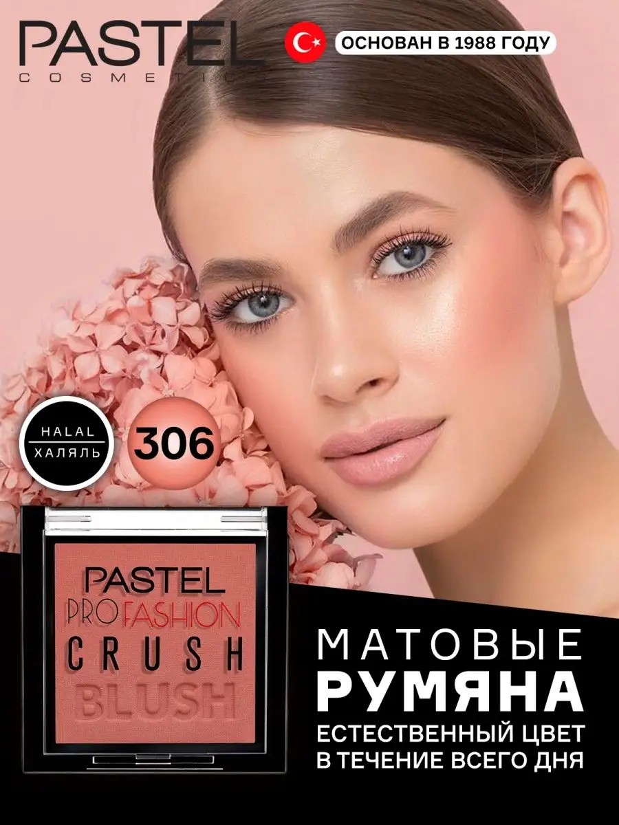 Мягкая и шелковистая структура русян халяльной косметики Pastel обеспечивает легкое нанесение. Цвета позволят придать лицу свежесть, сохраняя естественный вид. Невероятные мульти оттенки румян Crush Blush легко смешиваются, чтобы вы могли создать румянец любой интенсивности. Для идеального нанесения промокните мягкую чистую кисть в румяна и стряхните лишние. Нанесите румяна и растушуйте круговыми движениями. Экспериментируйте, создавая легкий румянец или скульптурность лицу. Данная профессиональная декоративная продукция для макияжа лица Pastel - это халяльная косметика, поэтому Вам не стоит переживать за качество и натуральность. Веганский состав не содержит веществ животного происхождения и глютена.
