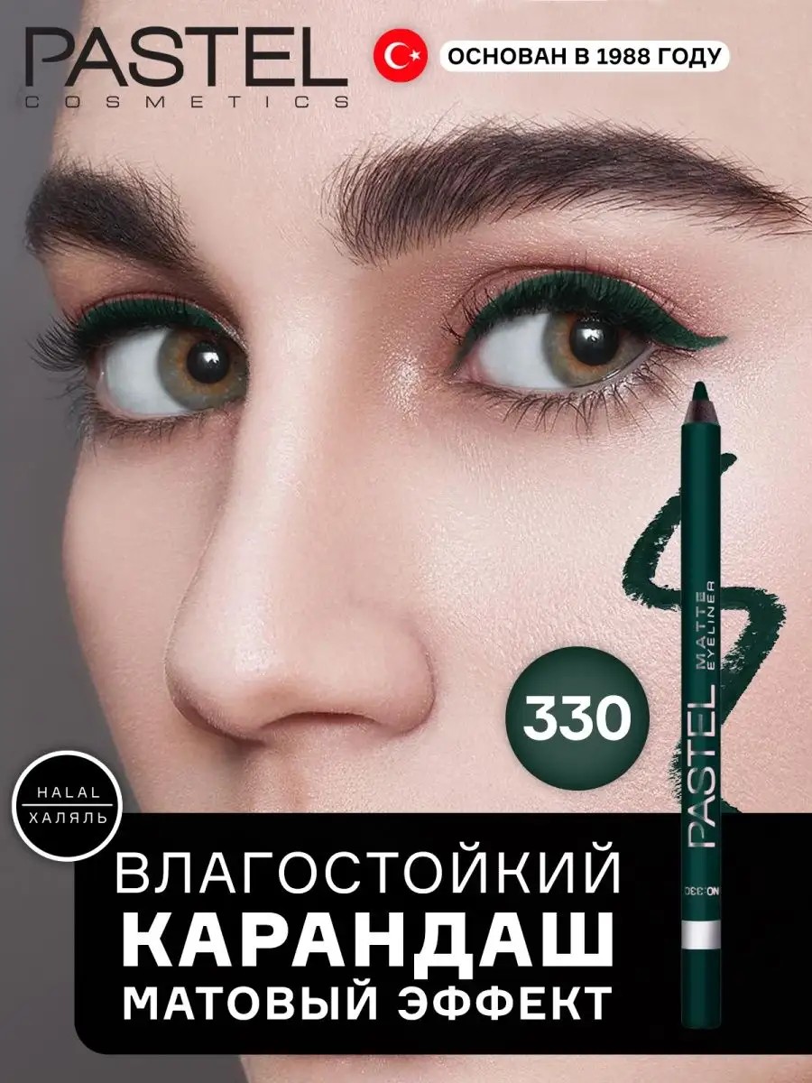 Pastel Cosmetics Матовый стойкий карандаш для глаз зеленый халяль