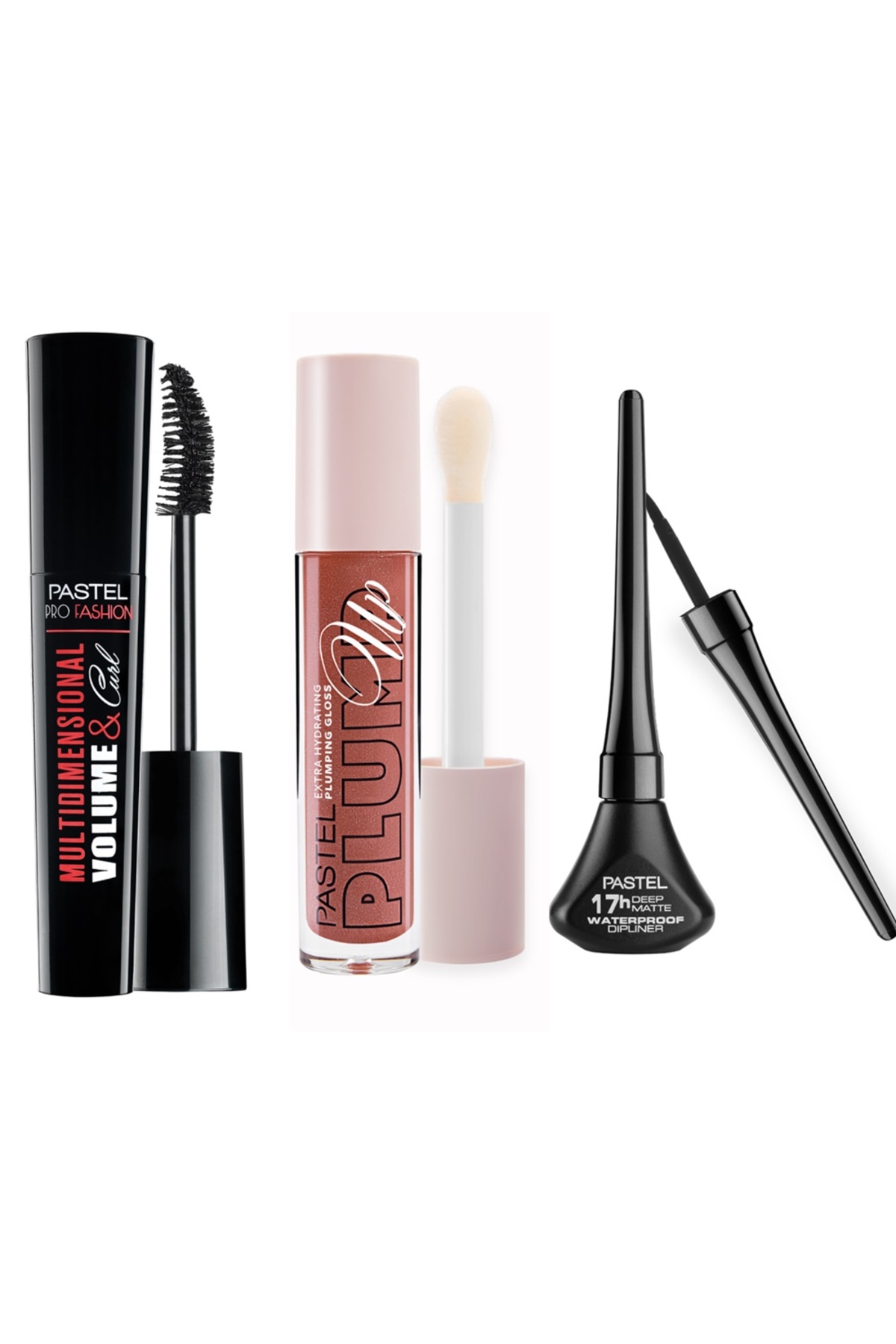 Pastel Plumping Lip Gloss 202 Loverdose + Matte Dipliner + Multidimensional Volume&Curl Mascara