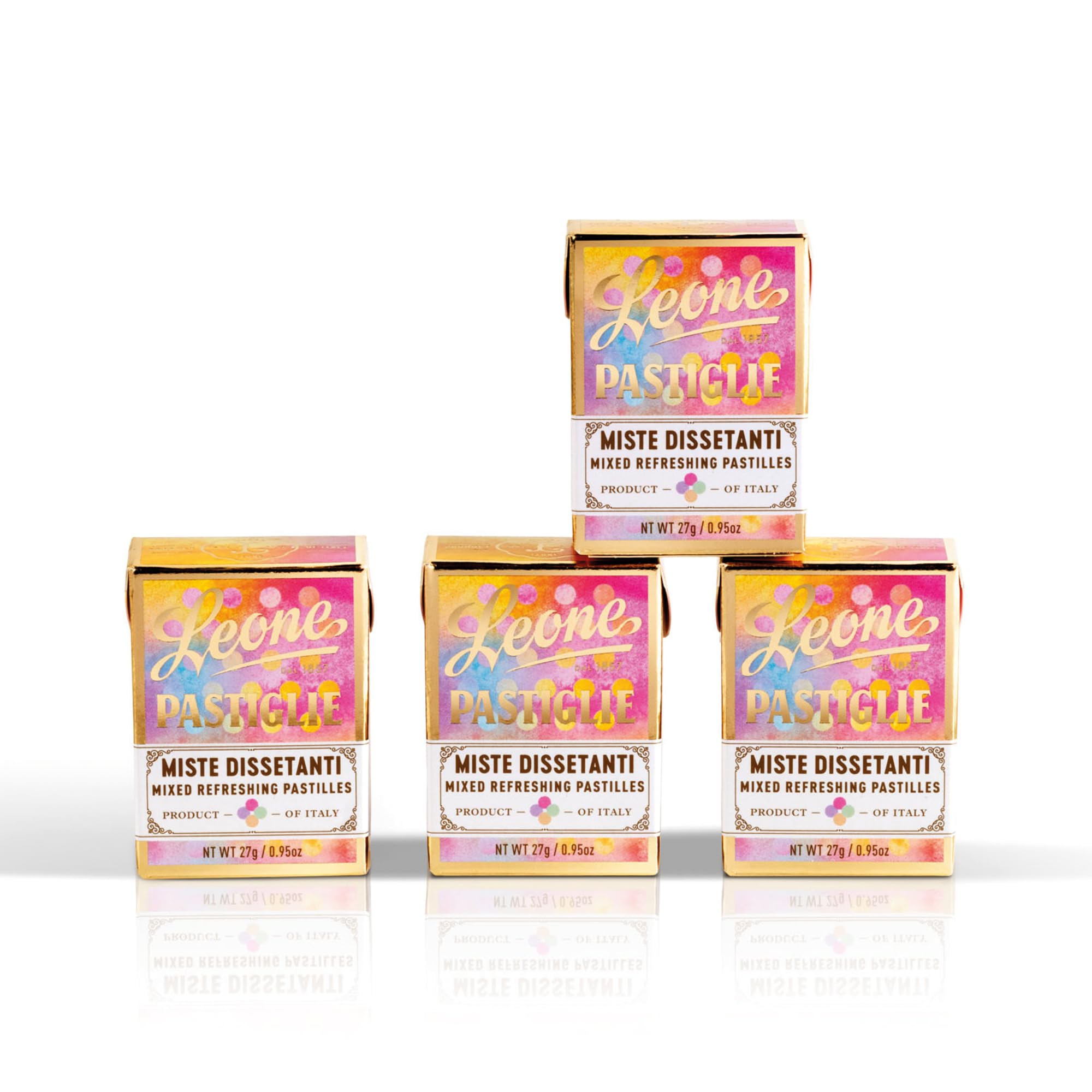 Pastiglie Leone Leone Since 1857 Refreshing Mixed Lozenges Leone Candy Box Vegan and Gluten Free 4 x 27 g