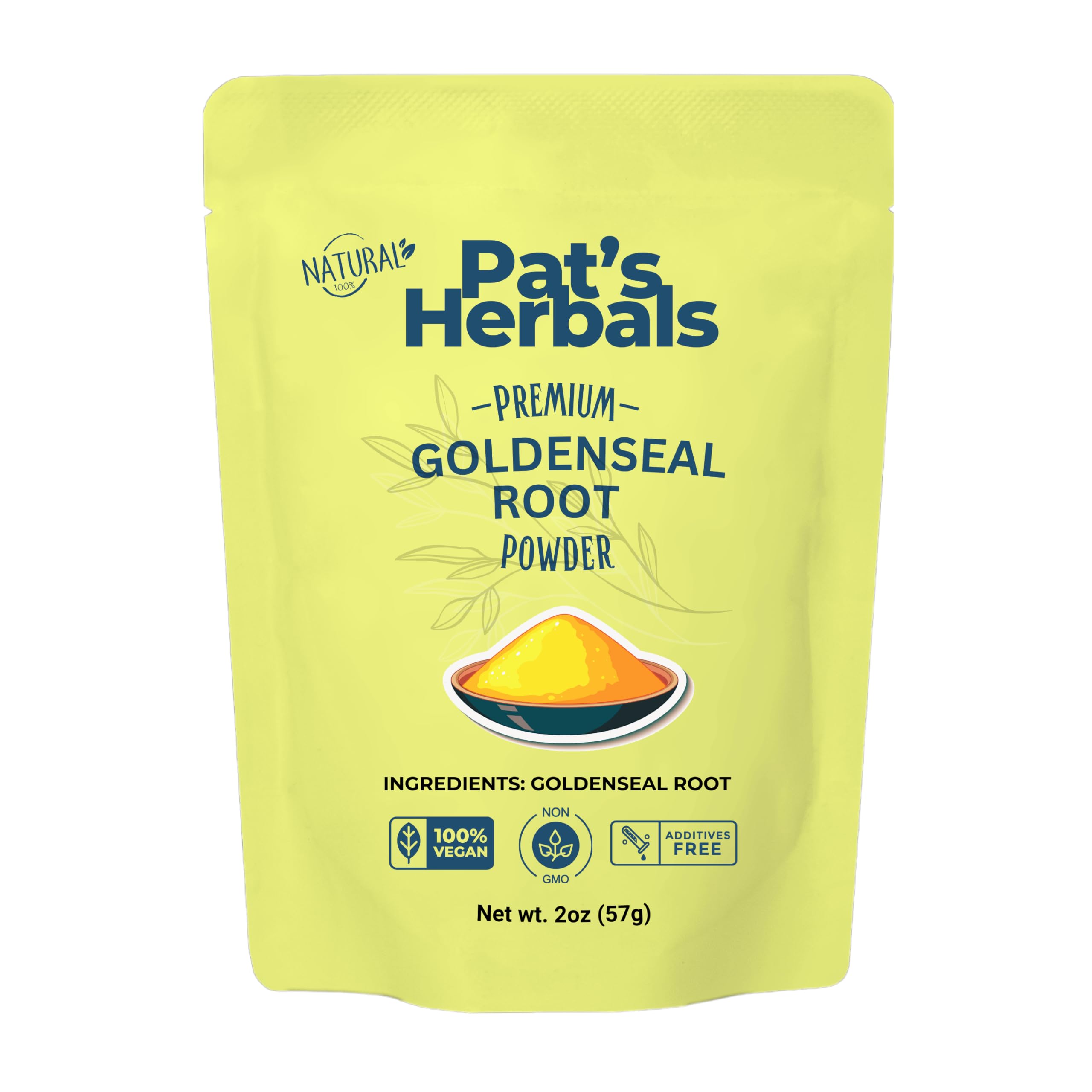 Pat's Herbals Goldenseal Root Powder - 2oz USA Grown Non-GMO | Pure Bright Yellow Root Powder