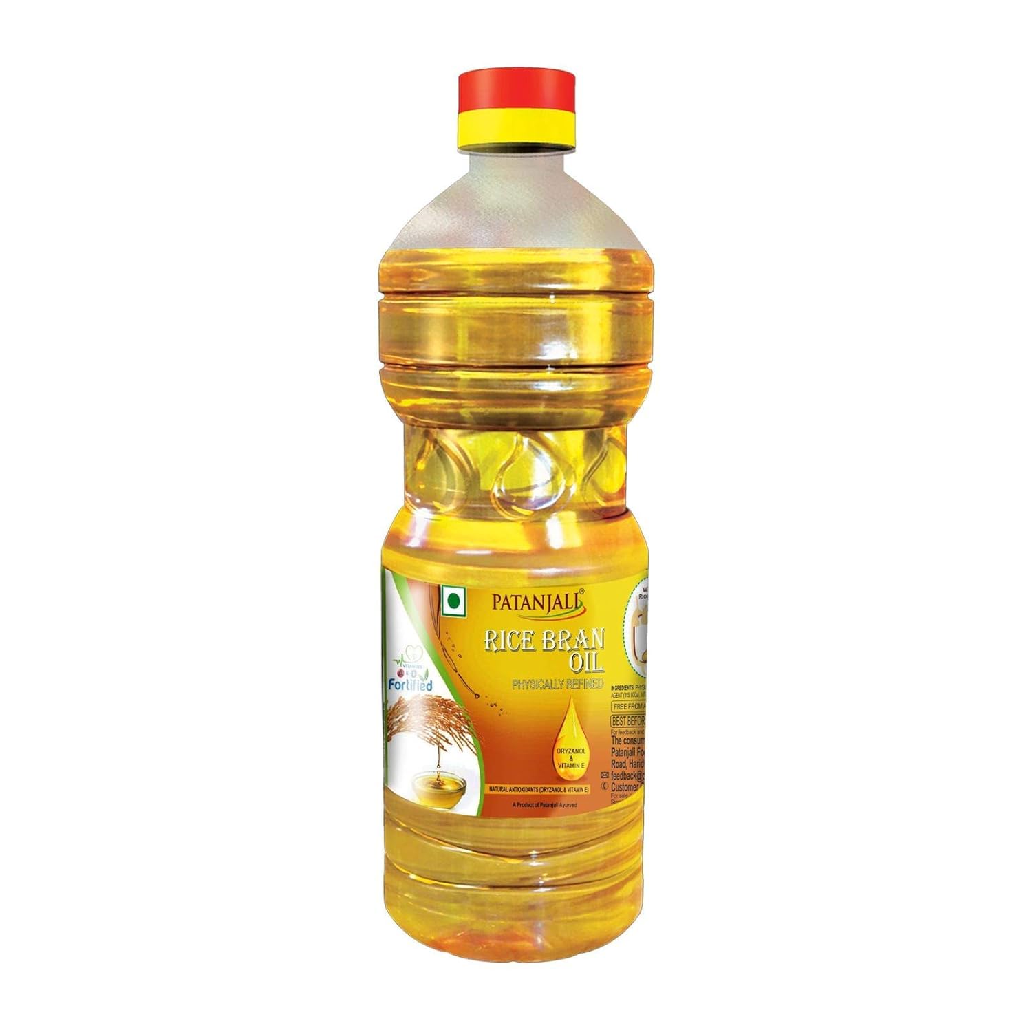 Pata'njali Rice Bran Oil Naturally Fatty Acid for Cooking Frying 1 L Bottle