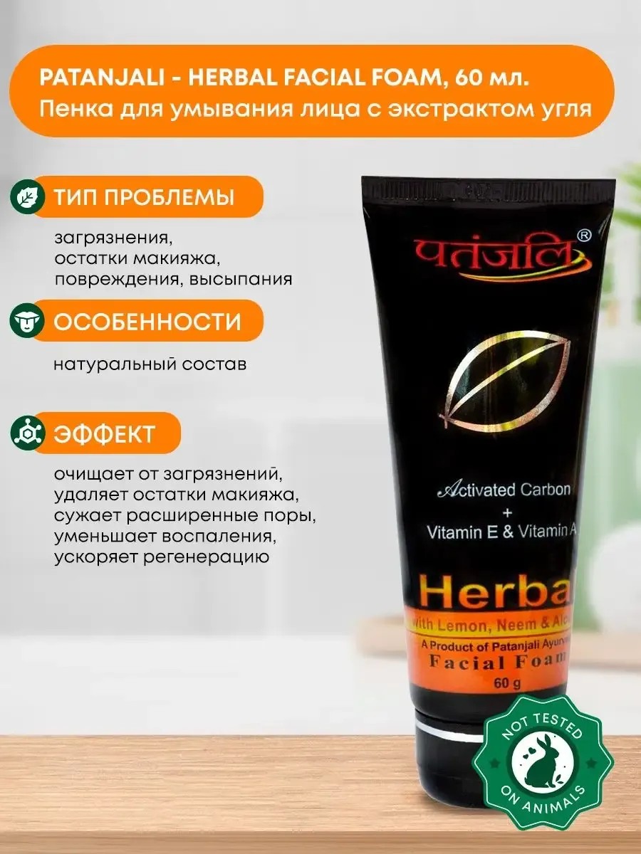Гель-пенка для умывания с активированным углем и витаминами А, Е Patanjali | Патанджали – удивительное аюрведическое средство для ухода за проблемной, жирной и комбинированной кожей. Ваше лицо приобретет цветущий сияющий вид, кожа станет бархатистой и гладкой, любые высыпания и раздражения в проблемных зонах постепенно исчезнут. Эта пенка деликатно отшелушивает отмершие клетки эпидермиса, сужает расширенные поры, уменьшает реактивность кожи.