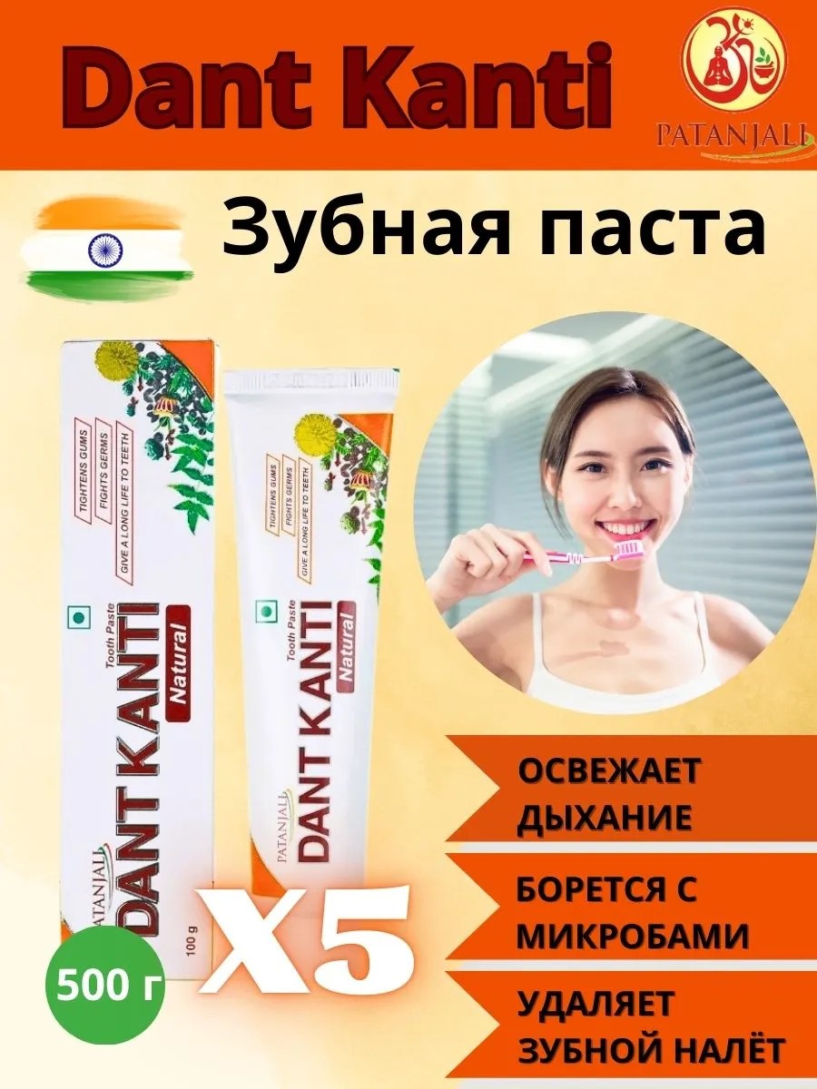 Patanjali Аюрведическая зубная паста Dant Kanti 100 гр, 5 шт