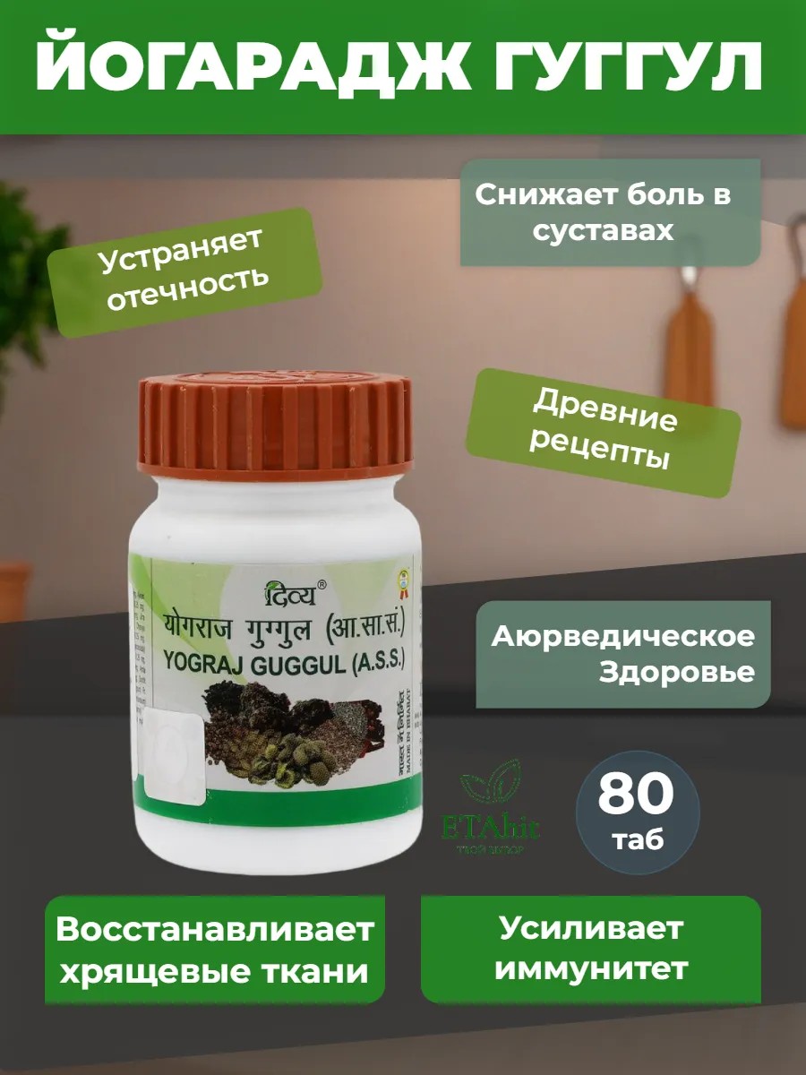 Yogaraj Guggul is a treatment for joint inflammation. It eliminates swelling, restores cartilage, and boosts immunity. After taking the tablets, joint pain disappears for a long time. It restores cartilage tissue and joint function. Other beneficial properties of the drug: removes waste and toxins; stabilizes kidney function; eliminates inflammation; reduces tissue swelling; eliminates congestion in the bile ducts and liver. Directions for use: Take the drug in 40-60-day courses – two tablets per day. For the treatment of degenerative-dystrophic processes – 2 tablets per day.