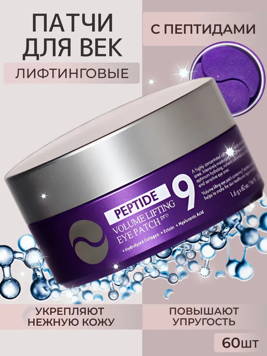 Гидрогелевые лифтинг-патчи Mидипиl Peptide 9 Volume Lifting Eye Patch Pro увлажняют, осветляют и укрепляют нежную кожу вокруг глаз, устраняют следы усталости и стресса, разглаживают морщины, повышают упругость и плотность.
