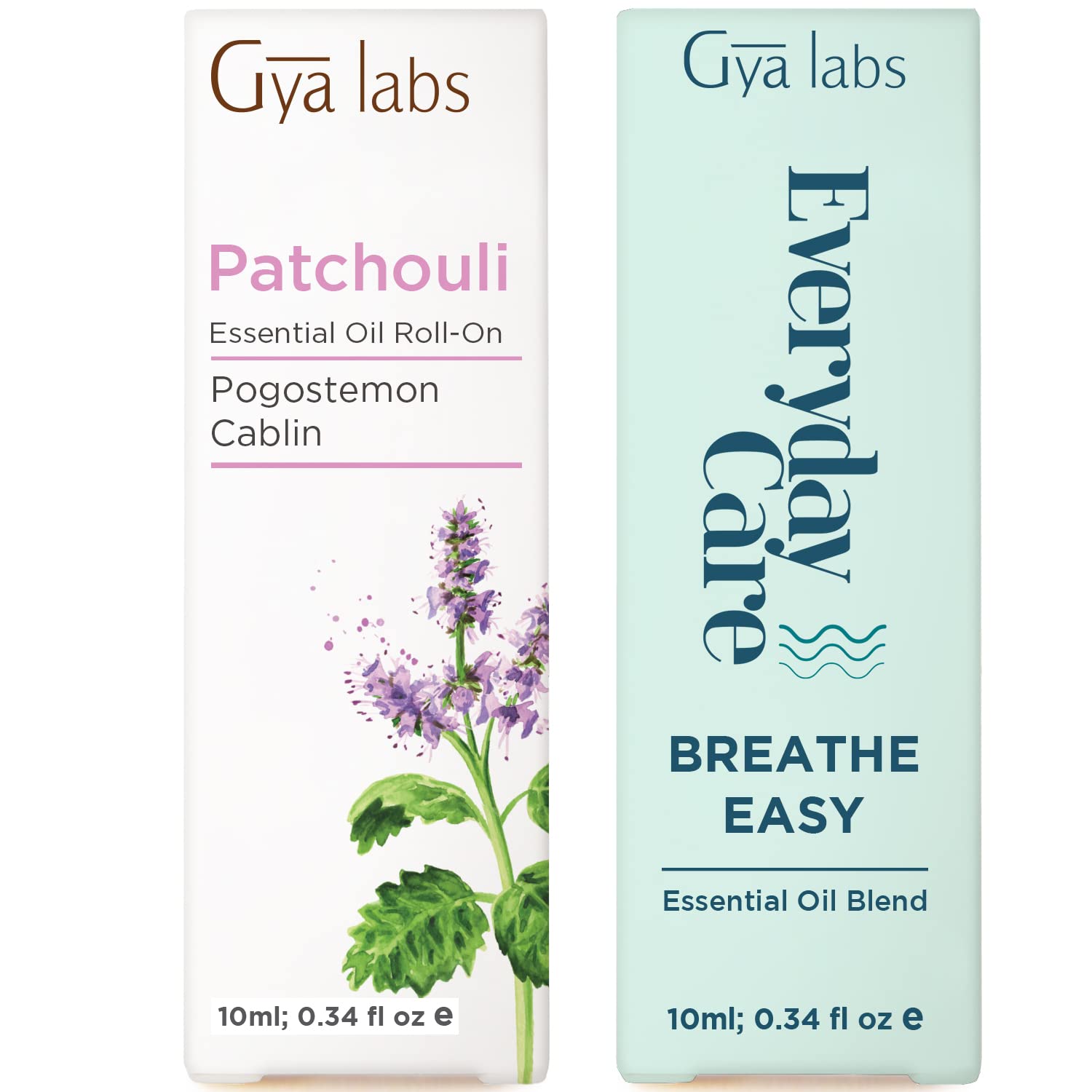 Patchouli & Breathe Roll On Set - Aromatherapy Grade Essential Oils Set - 2x10ml - Gya Labs
