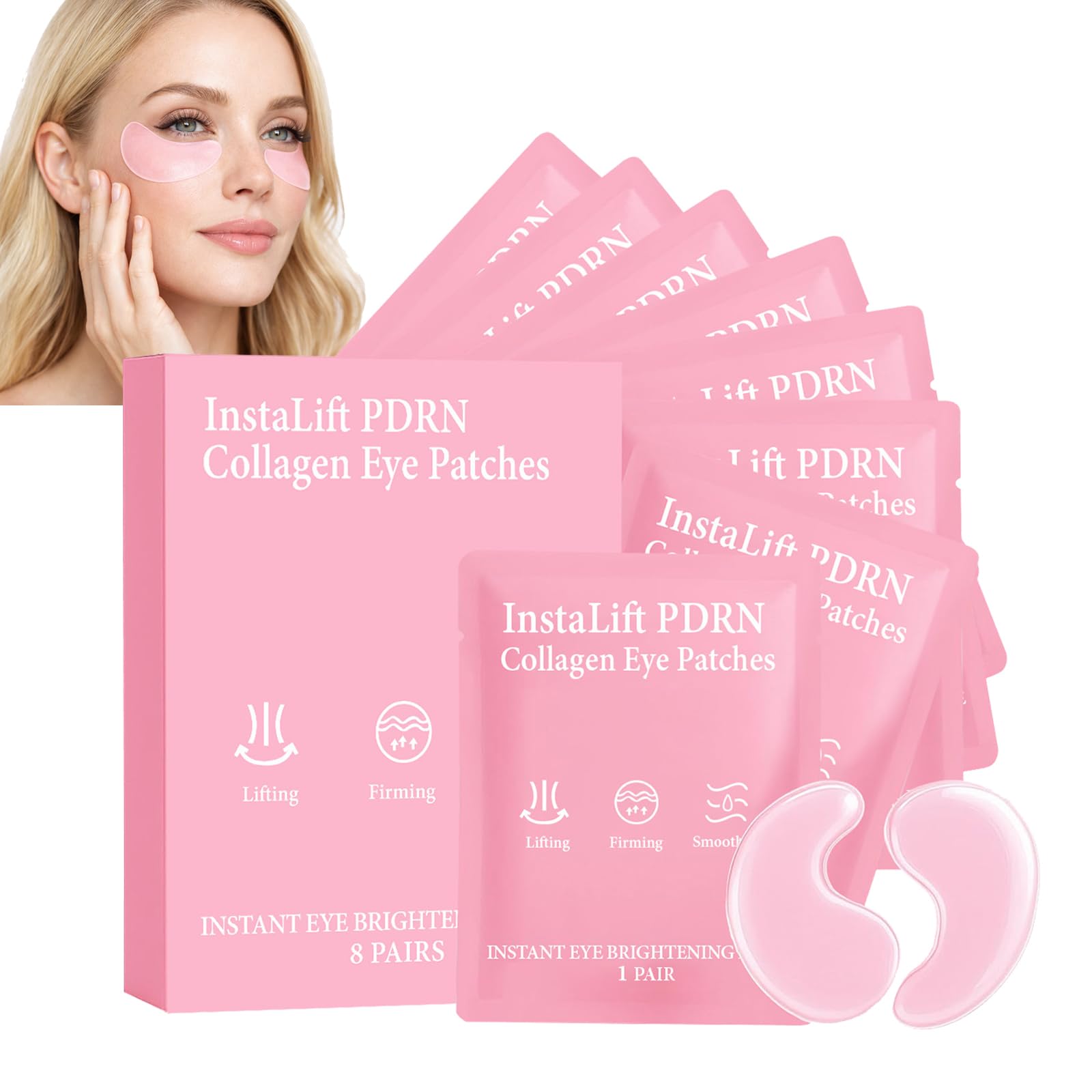 Patchs pour les yeux Instalift PDRN Collagen, patchs gel pour les poches sous les yeux, les cernes et les ridules, contiennent du collagène hydrolysé, patchs hydrogel profondément hydratants (1pcs)