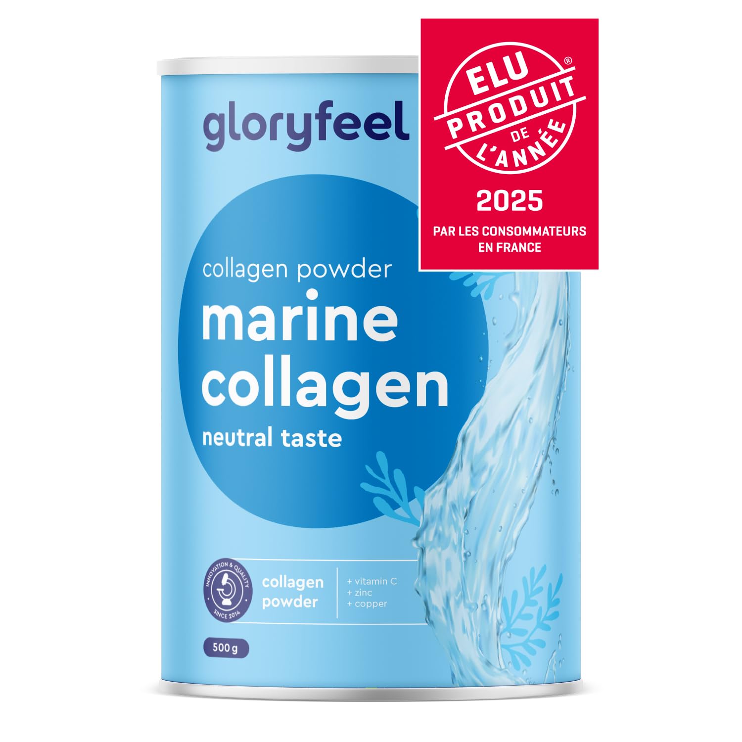 NEW QUALITY AND STABILITY STANDARDS - gloryfeel products are made in Germany and undergo extensive stability testing to maintain consistent quality over a long period of time. Our commitment to exceeding industry standards underlines our leadership in quality assurance. Discover our Certificates of Analysis for greater transparency and confidence. Keep out of reach of children and not recommended for children under 6 years old. ✓ PREMIUM QUALITY, NO UNWANTED ADDITIVES - Our marine collagen powder is made without artificial additives or genetic engineering. No magnesium stearate, no release agents, no flavors, no stabilizers, no lactose, no gluten, and most importantly, no preservatives. WHY COLLAGEN HYDROLYSATE? - Collagen is a protein found in almost all structures of our body, such as skin, connective tissues and tendons. From the age of 25-30, collagen decreases and becomes even more important to ensure elasticity and tissue regeneration. Incorporating collagen after this period is therefore important to maintain its progressive loss. The effects have not been officially confirmed. FOR SOFT JOINTS, SMOOTH SKIN AND HEALTHY HAIR - Our marine collagen is enriched with vitamin C, zinc and copper. According to EFSA, vitamin C contributes to the normal function of bones, skin and cartilage. Zinc maintains nails, hair, skin and the immune system. In combination with copper, it contributes to the maintenance of normal connective tissues. . ?MARINE COLLAGEN POWDER TYPE 1 - Our marine collagen peptide contains 12,500 mg of patented VERISOL hydrolyzed collagen type 1 per dose. The total daily dose is 15g dissolved in 250ml of water, which corresponds to 2 scoops per day. Thanks to its powder form, it is easy to take every day and incorporate into your coffee, smoothies, tea, or juice!NOUVELLES NORMES DE QUALITÉ ET DE STABILITÉ - Les produits gloryfeel sont fabriqués en Allemagne et sont soumis à des tests de stabilité approfondis afin de maintenir une qualité constante sur une longue période. Notre engagement à dépasser les normes de l'industrie souligne notre position de leader en matière d'assurance qualité. Découvrez nos certificats d'analyse pour plus de transparence et de confiance. Conservez hors de portée des enfants et déconseillé aux enfants de moins de 6 ans. ✓ QUALITÉ PREMIUM, SANS ADDITIFS INDÉSIRABLES - Notre poudre de collagène marin est fabriquée sans additifs artificiels ni génie génétique. Pas de stéarate de magnésium, pas d'agents de démoulage, pas d'arômes, pas de stabilisateurs, pas de lactose, pas de gluten et, surtout, pas de conservateurs. POURQUOI L'HYDROLYSAT DE COLLAGENE ? - Le collagène est une protéine présente dans presque toutes les structures de notre corps, comme la peau, les tissus conjonctifs et les tendons. À partir de 25-30 ans, le collagène diminue et devient encore plus important pour assurer l'élasticité et la régénération des tissus. L'incorporation de collagène après cette période est donc importante pour maintenir sa perte progressive. Les effets n'ont pas été officiellement confirmés. POUR DES ARTICULATIONS SOUPLES, PEAU LISSE ET CHEVEUX SAINS - Notre collagene marin est enrichi avec de la vitamine C, zinc et cuivre. Selon l'EFSA, la vitamine C contribue au fonctionnement normal des os, de la peau et du cartilage. Le zinc maintient les ongles, les cheveux, la peau et le système immunitaire. En combinaison avec le cuivre, il contribue au maintien de tissus conjonctifs normaux. . ?COLLAGENE MARIN EN POUDRE TYPE 1 - Notre peptide de collagène marin contient 12 500 mg de collagène hydrolysé breveté VERISOL de type 1 par dose. La dose journalière totale est de 15 g dissous dans 250 ml d'eau, ce qui correspond à 2 dosettes par jour. Grâce à sa forme en poudre, il est facile à prendre tous les jours et à incorporer dans votre café, vos smoothies, votre thé ou votre jus !.