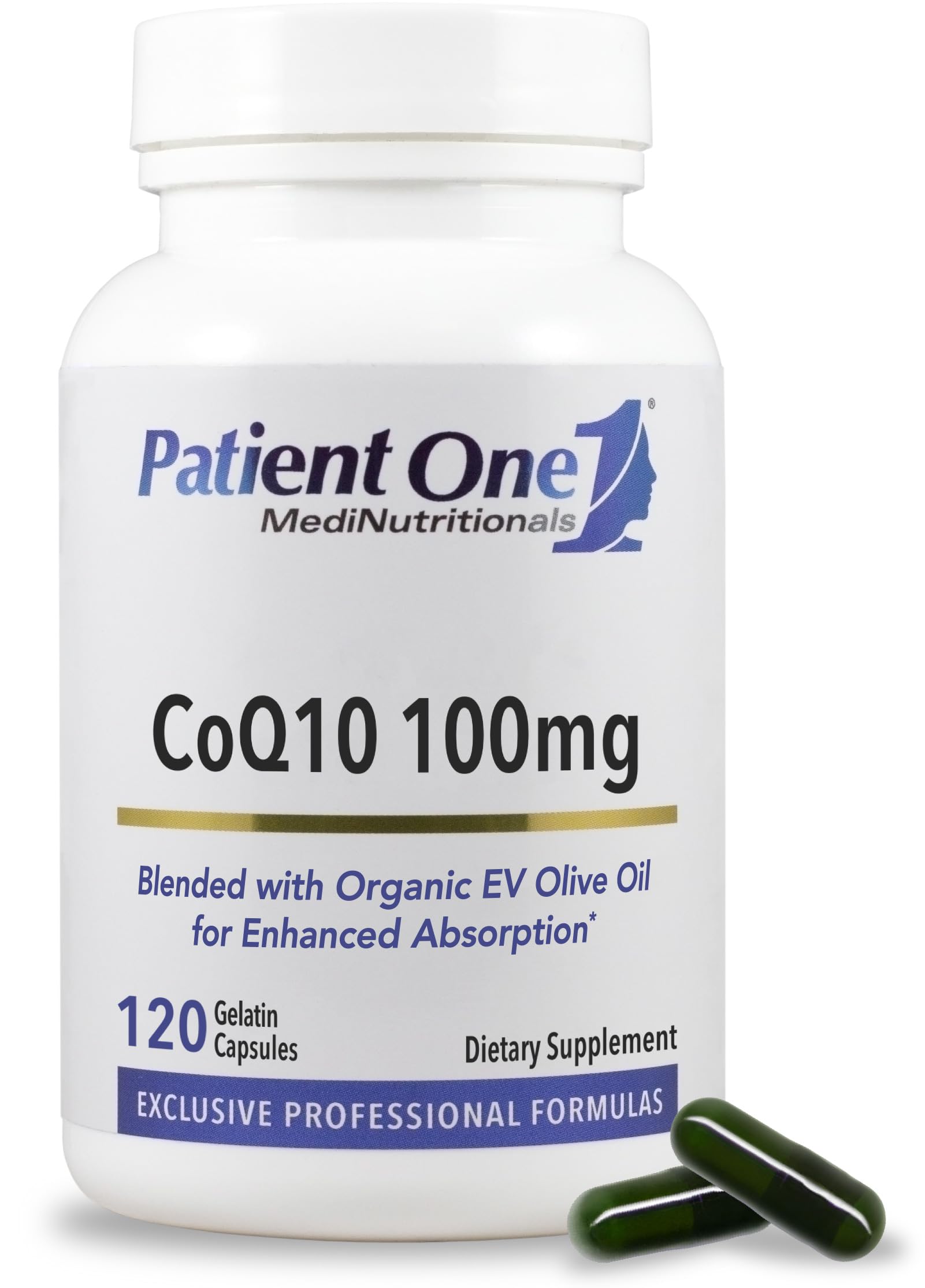 Patient One Coenzyme Q10 (CoQ10) 100 mg | Antioxidant Supplement to Support Heart and Vascular Health* | with Organic Olive Oil | 120 Capsules