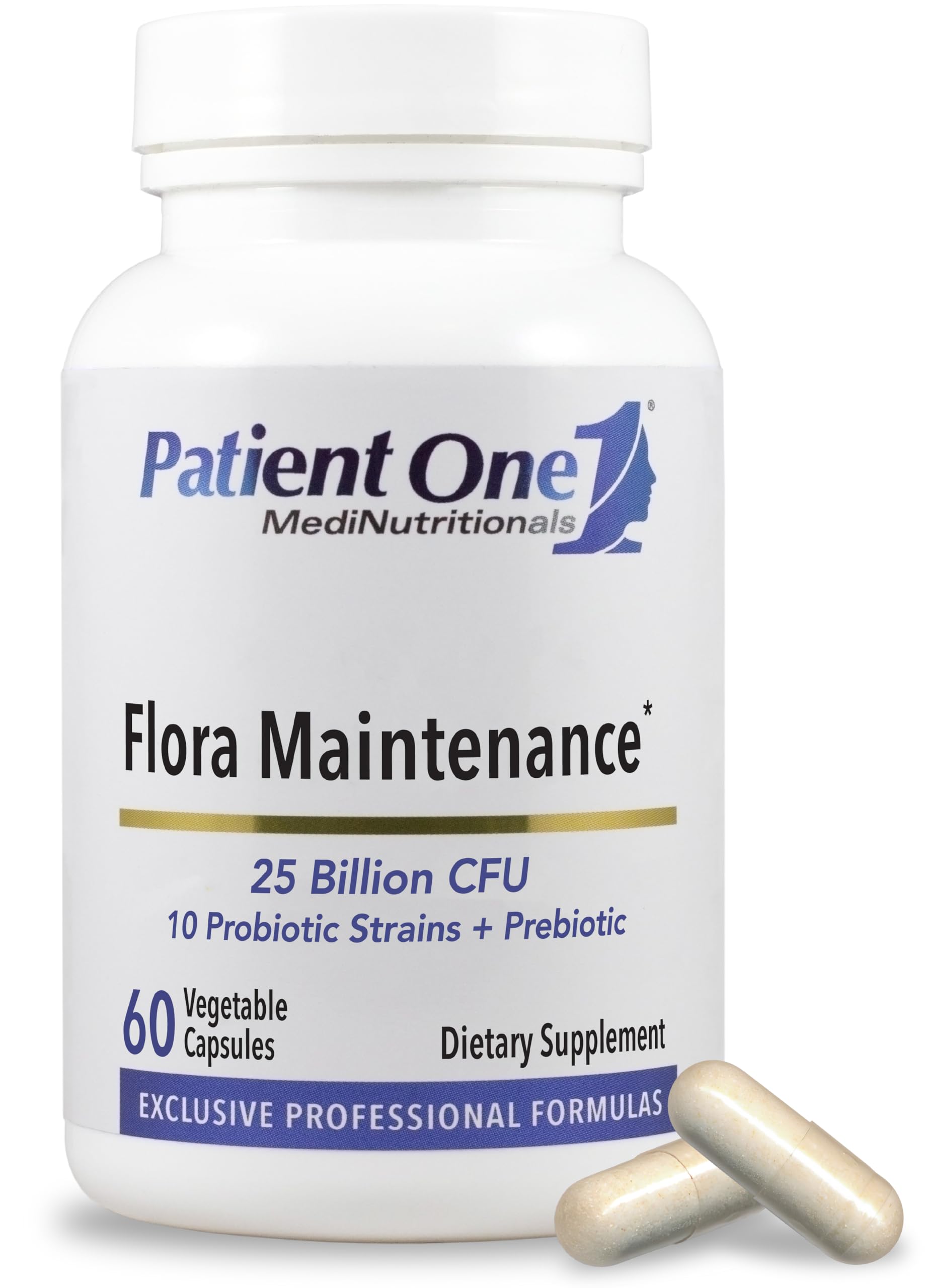 Patient One Flora Maintenance | Probiotic Supplement to Aid Balanced Intestinal Flora* | 25 Billion CFU 10 Probiotic Strains Prebiotic | 60 Capsules